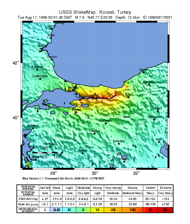 17 August 1999, Mw 7.6, Sea of Marmara, Turkey