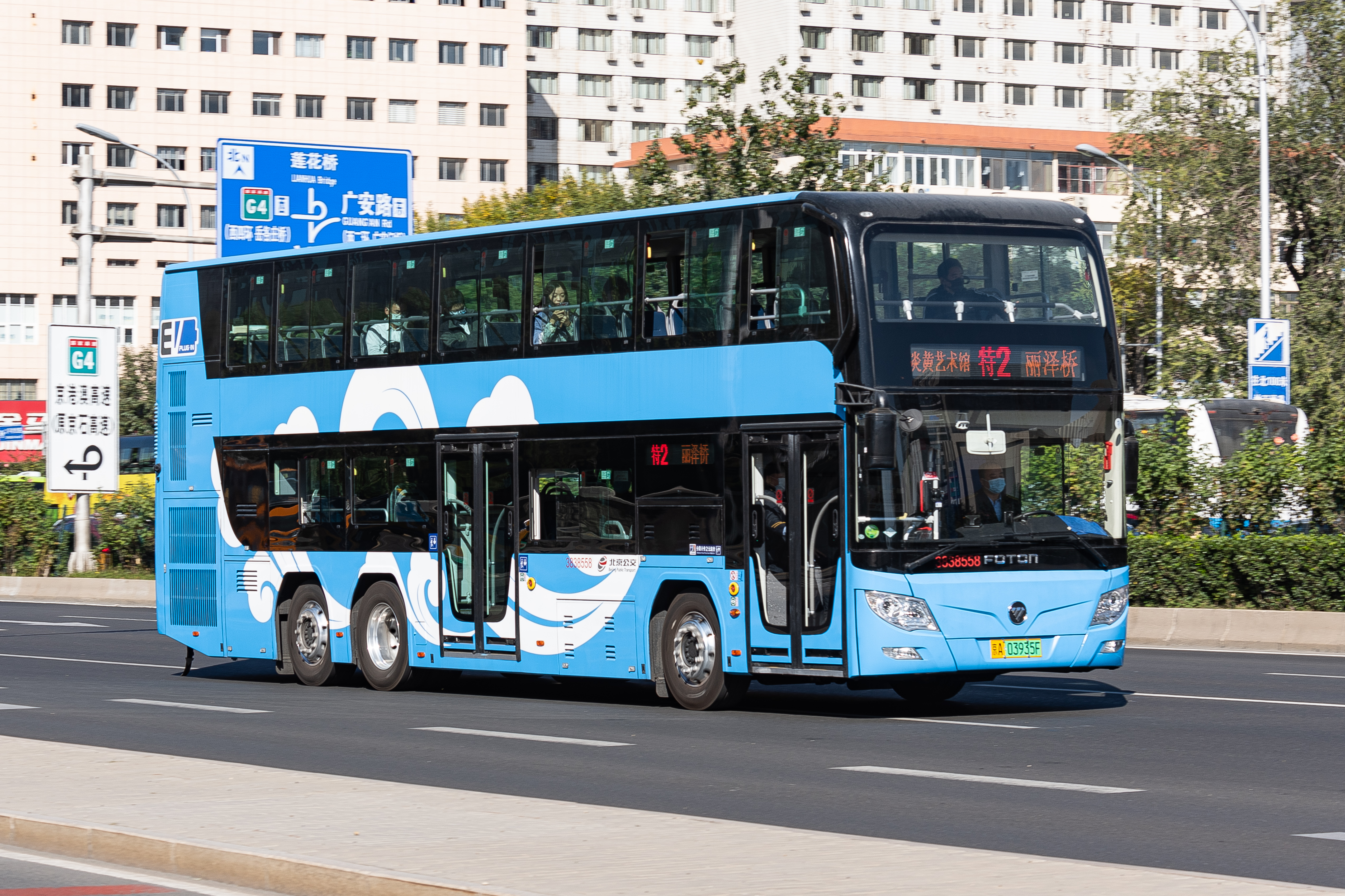 포톤 BJ6128SHEVCA-5 플러그인 하이브리드 2층 버스(Double-decker bus)가 베이징 버스에서 운행 중이다.