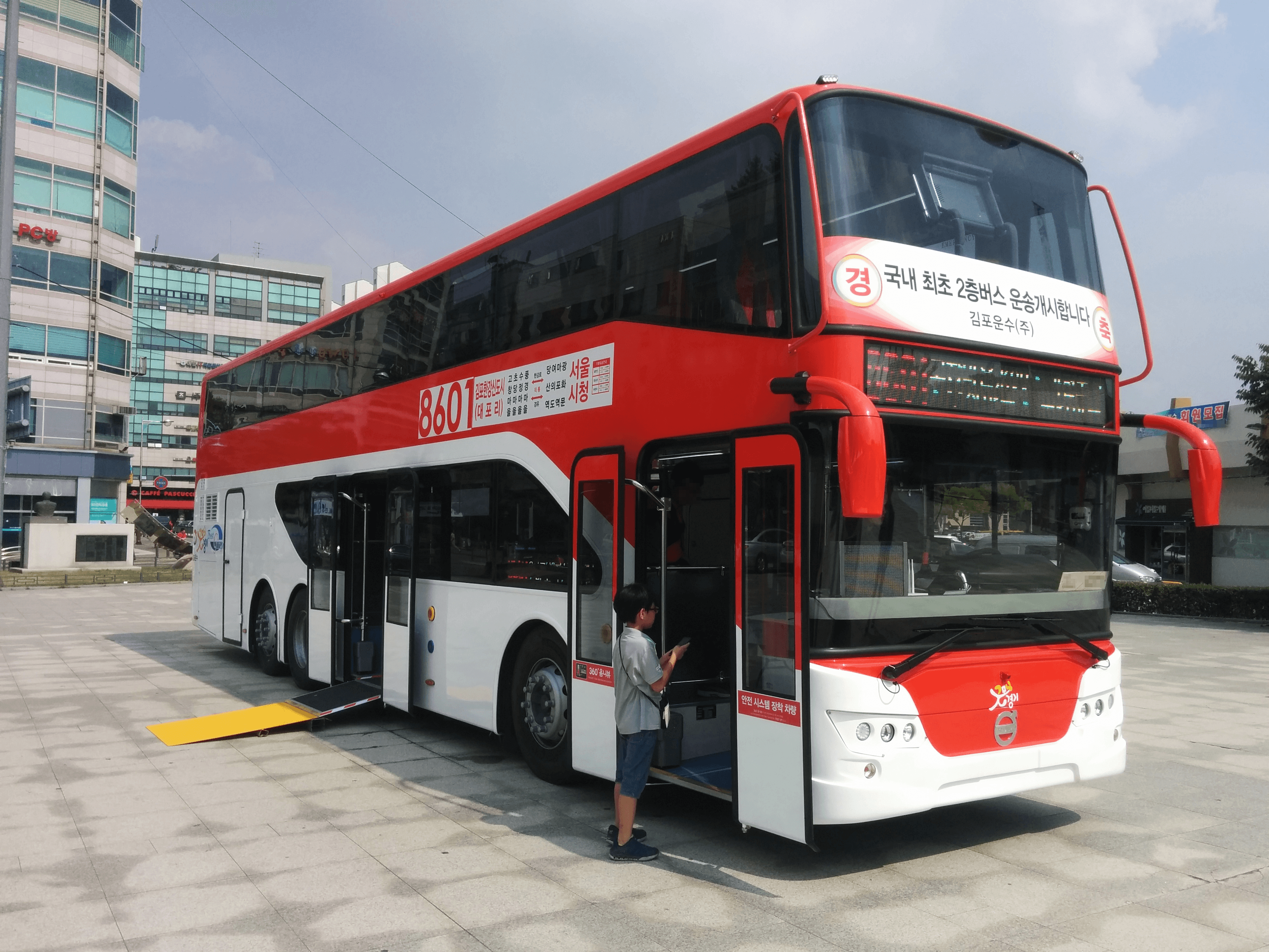 2015년, 수도 서울(Seoul)과 그 주변 지역인 경기도(Gyeonggi Province) 및 인근 인천(Incheon)시 사이를 오가는 통근자들을 위해 20대의 2층 버스가 시범 사업으로 도입되었다.[54]
