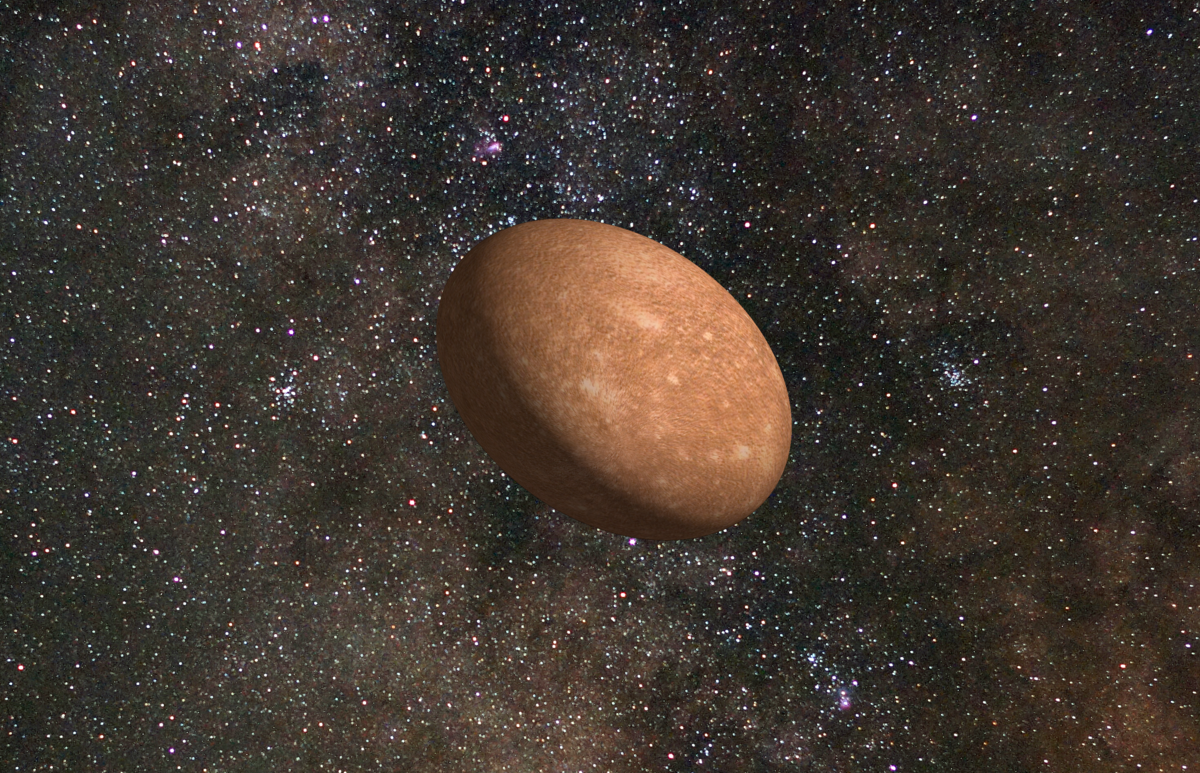 반면 우주 관측은 넓은 범위의 파장에서 열 방출을 측정할 수 있어 더 정확한 결과를 제공한다. 2005년 스피처 관측은 0.12~0.3의 높은 알베도를 제시하며, 이는 450km~750km의 작은 직경에 해당한다. 2007년 스피처의 다중 파장 관측에서는 단일 밴드와 2 밴드 솔루션에서 각각 약 502km, 621km의 평균 직경이 추정되었고, 이로부터 500km의 평균 직경이 채택되었다. 2013년 허셜 우주 관측소의 다중 밴드 관측에서는 668km의 평균 직경이 산출되었는데, 이는 이전 제약 조건과 일치한다.