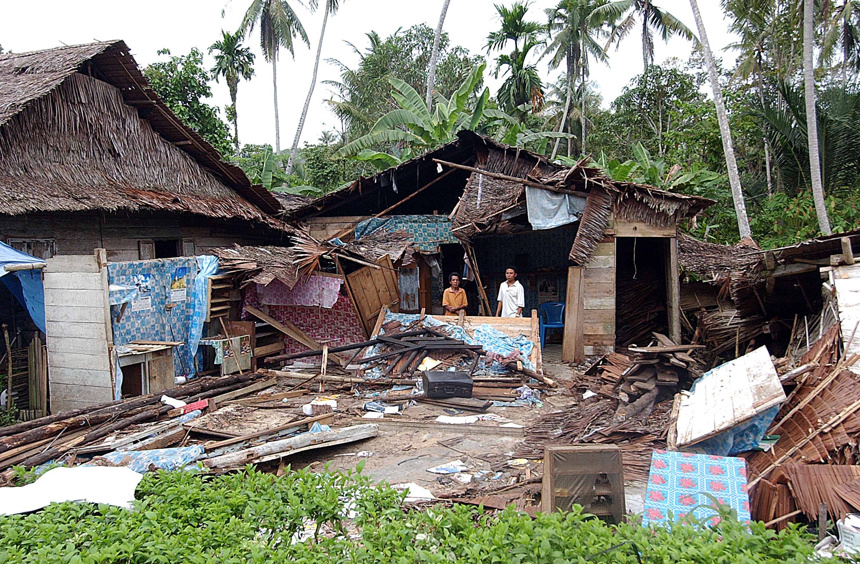 2005년 4월 4일 미 해군이 촬영한 2005년 니아스-시멀루에 지진으로 파괴된 주택 사진