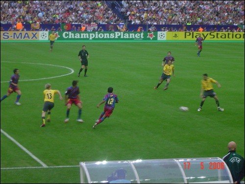 2006년 5월 17일, 프랑스 생드니의 스타드 드 프랑스에서 바르셀로나와 아스널의 2006 UEFA 챔피언스리그 결승전이 열렸다. 경기 초반 아스널의 티에리 앙리가 두 차례 슈팅을 시도했으나 빅토르 발데스 골키퍼가 선방했다.[19] 7분에는 바르셀로나의 뤼도비크 지울리가 좁은 각도에서 슈팅을 날렸지만 옌스 레만 골키퍼가 막아냈다.[65] 11분, 바르셀로나가 프리킥을 얻었으나 호나우지뉴의 슈팅은 골문을 벗어났다.[65]