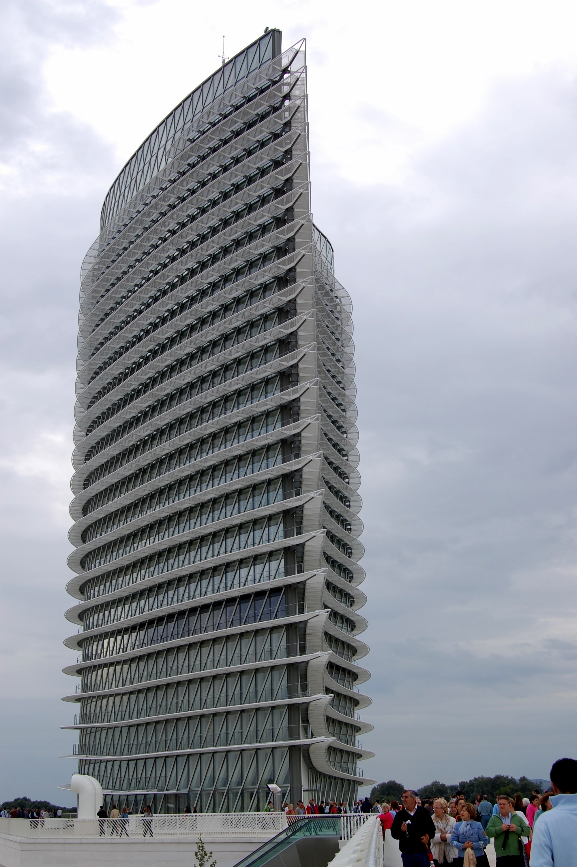워터 타워[3]는 2008년 엑스포의 또 다른 상징적인 건물이자 수직적인 아이콘이었다. 엔리케 데 테레사가 설계했으며, 높이 76m, 접근 가능한 면적은 10400m2이다. 최상층에는 사라고사의 멋진 전망을 감상할 수 있는 720m2 규모의 파노라마 바가 있다. 타워 내부에는 "우리 행성에 생명이 도래"를 나타내는 23m 높이의 조각품 ''스플래시''가 있다. 동적 시뮬레이션 시스템을 기반으로 한 스플래시 조각은 모나 김, 토드 팔머, 올가 수비로스, 사이먼 테일러가 Program Collective에서 설계했다.[4][5]