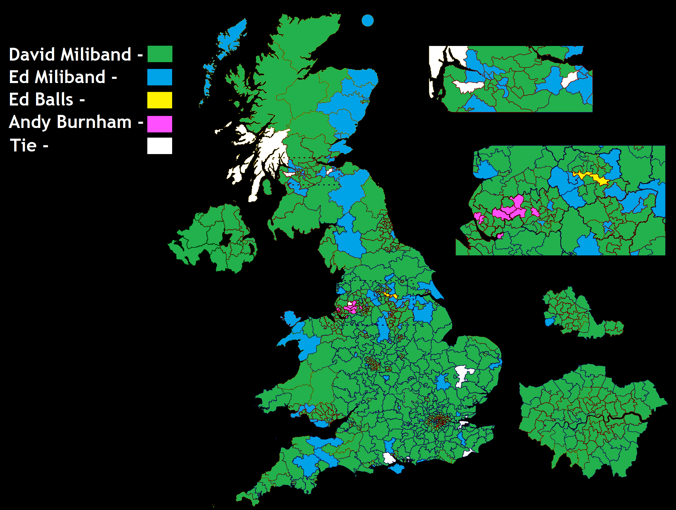 최종 추천 결과, 데이비드 밀리밴드가 하원의원 약 3분의 1의 지지를 얻어 압도적으로 우세했다. 에드 밀리밴드 또한 다른 후보들을 제치고 많은 추천인을 확보했다.[65]