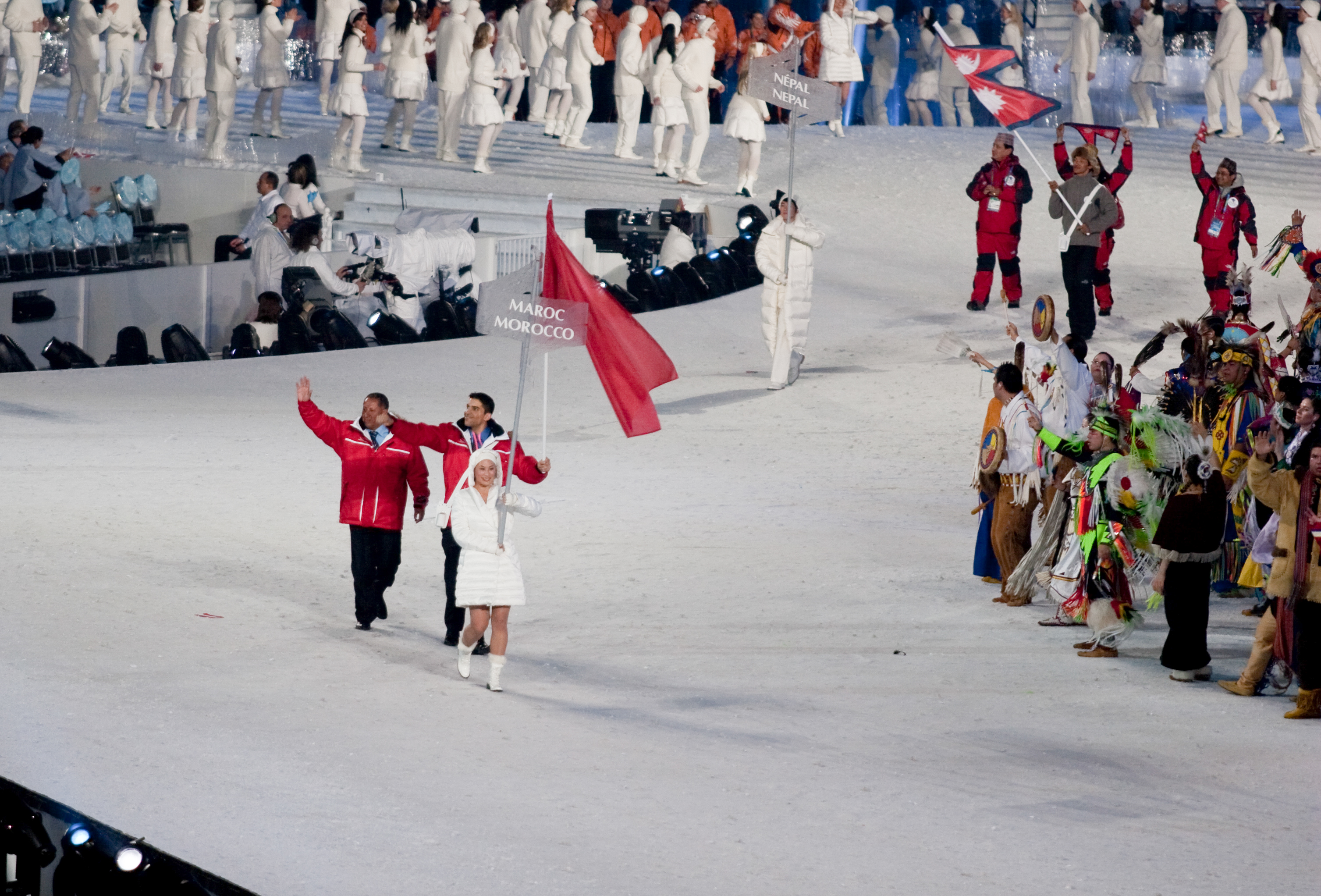 2010년 동계 올림픽의 모로코 대표로 알파인 스키 선수 사미르 아즈마니가 선정되었다. 프랑스에서 태어난 전직 스키 강사인 그는 이전에 2002년 동계 올림픽 (솔트레이크시티 개최) 출전을 시도했으며, 2006년 동계 올림픽 (토리노 개최) 예선 기간 중 부상을 입었다. 아즈마니는 전 세계의 스키 대회에 출전하여 점수를 획득한 후 2010년 올림픽 남자 슬라롬 경기에 출전 자격을 얻었다.[3] 그는 개회식에서 국기 게양을 맡았다.[2]