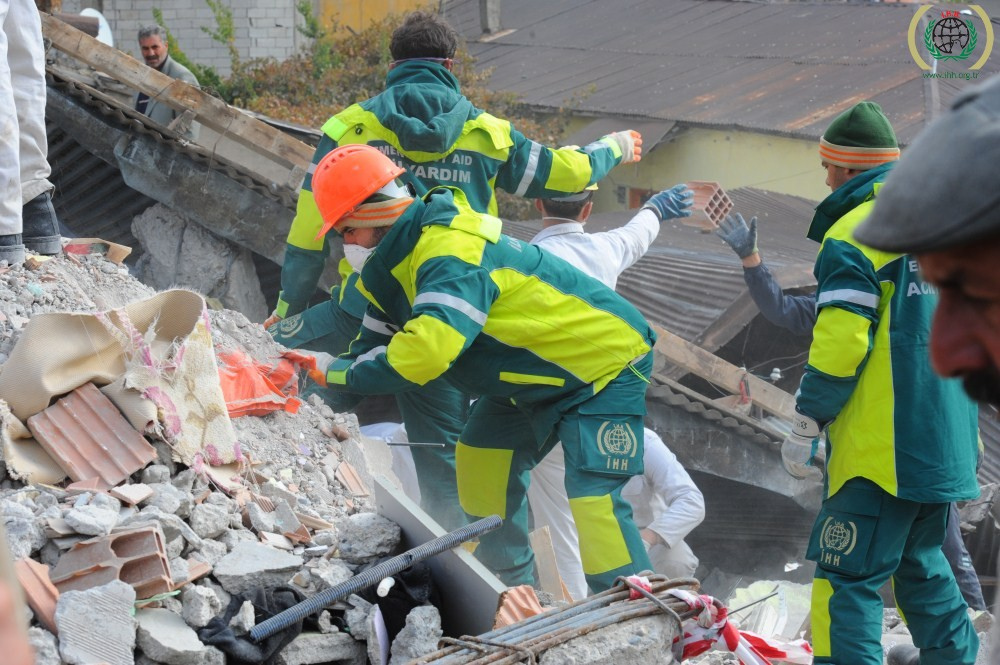 10월 23일부터 터키 정부는 재해 대응을 위해 직원 1,275명, 차량 174대, 의료진 290명, 구급차 43대, 항공 구급 요원 6대를 투입했다. 지역 주민들은 구조 활동에 참여했으며, 맨손으로 참여하는 사람들도 있었다[75]。생존자들과 야당 정치인들은 정부의 위기 관리를 비판했다[76]