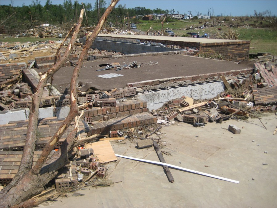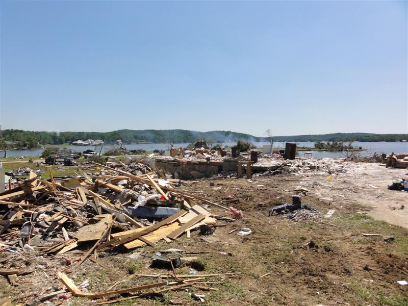 그 후 모건 군의 북서쪽 모퉁이를 통과하여 위휠러 호수를 건너 라임스톤 군으로 이동하여 브라운스 페리 원자력 발전소에서 약 3.22km 이내로 접근했다. 이 토네이도는 이 지역의 정전을 유발했고, 발전소는 가동을 중단해야 했다.[97][98][99] 이 토네이도는 작은 지역 사회인 태너로 계속 이동했다.[97][98][99] 태너는 넓은 지역에서 EF4 피해를 입었고, "최고 수준의 EF4에서 EF5에 가까운 피해"를 입는 좁은 통로가 있었다. 폭풍은 앵커 볼트가 있는 몇 채의 잘 지어진 주택을 "완전히 쓸어버렸다".[97]