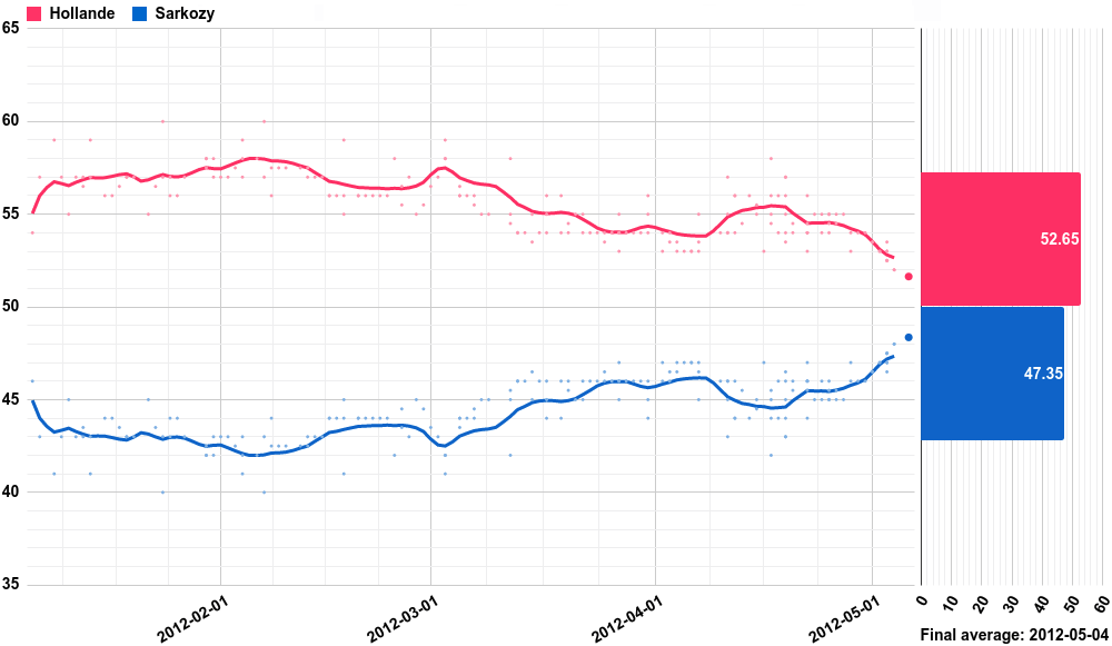 2012년 프랑스 대통령 선거는 2012년 4월 22일과 5월 6일에 걸쳐 치러졌으며, 프랑스 대통령을 선출하는 선거였다. 1차 투표에서 과반수 득표자가 없어, 1차 투표 1위인 프랑수아 올랑드와 2위인 니콜라 사르코지가 결선 투표에 진출했다. 결선 투표에서 올랑드는 51.64%를 득표하여 사르코지를 꺾고 대통령에 당선되었으며, 1995년 이후 17년 만에 사회당 출신 대통령이 탄생했다.