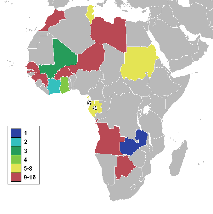가나 | I조 1위 | 17회 (1963, 1965, 1968, 1970, 1978, 1980, 1982, 1984, 1992, 1994, 1996, 1998, 2000, 2002, 2006, 2008, 2010) | 우승 (1963, 1965, 1978, 1982) |