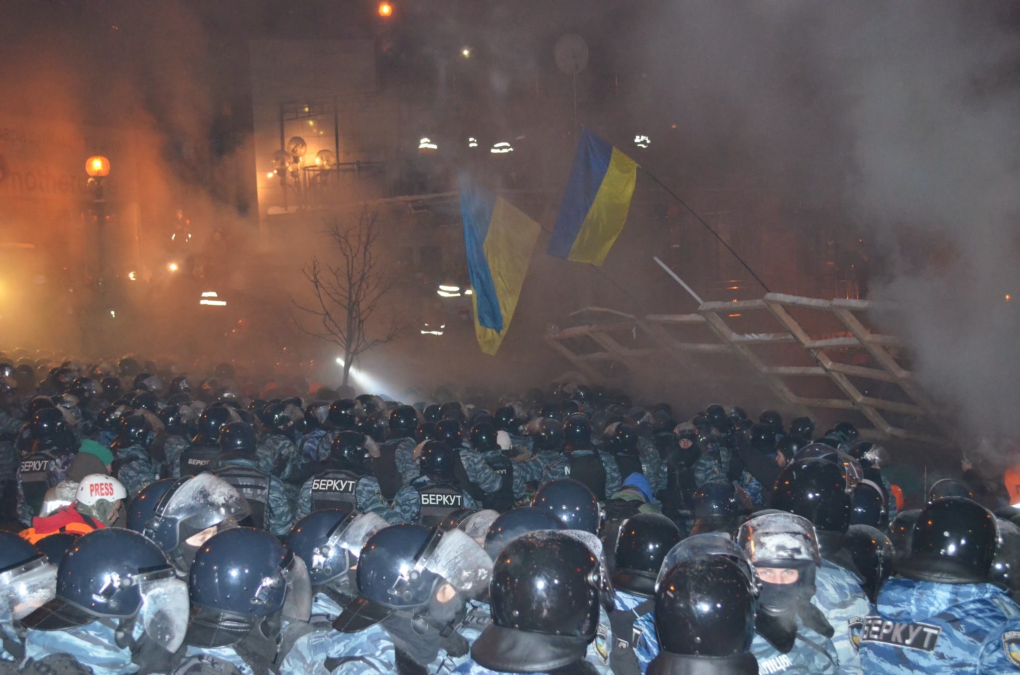 2013년 12월 11일 새벽 1시 2분, 베르쿠트 특수 경찰 부대가 유로마이단 정리를 시도했다. 베르쿠트 병사들은 인스티투츠카 거리에 있는 바리케이드를 부수기 시작했고, "자유"당 의원들과 싸움을 시작하여 의원 2명이 부상을 입었다.[7]