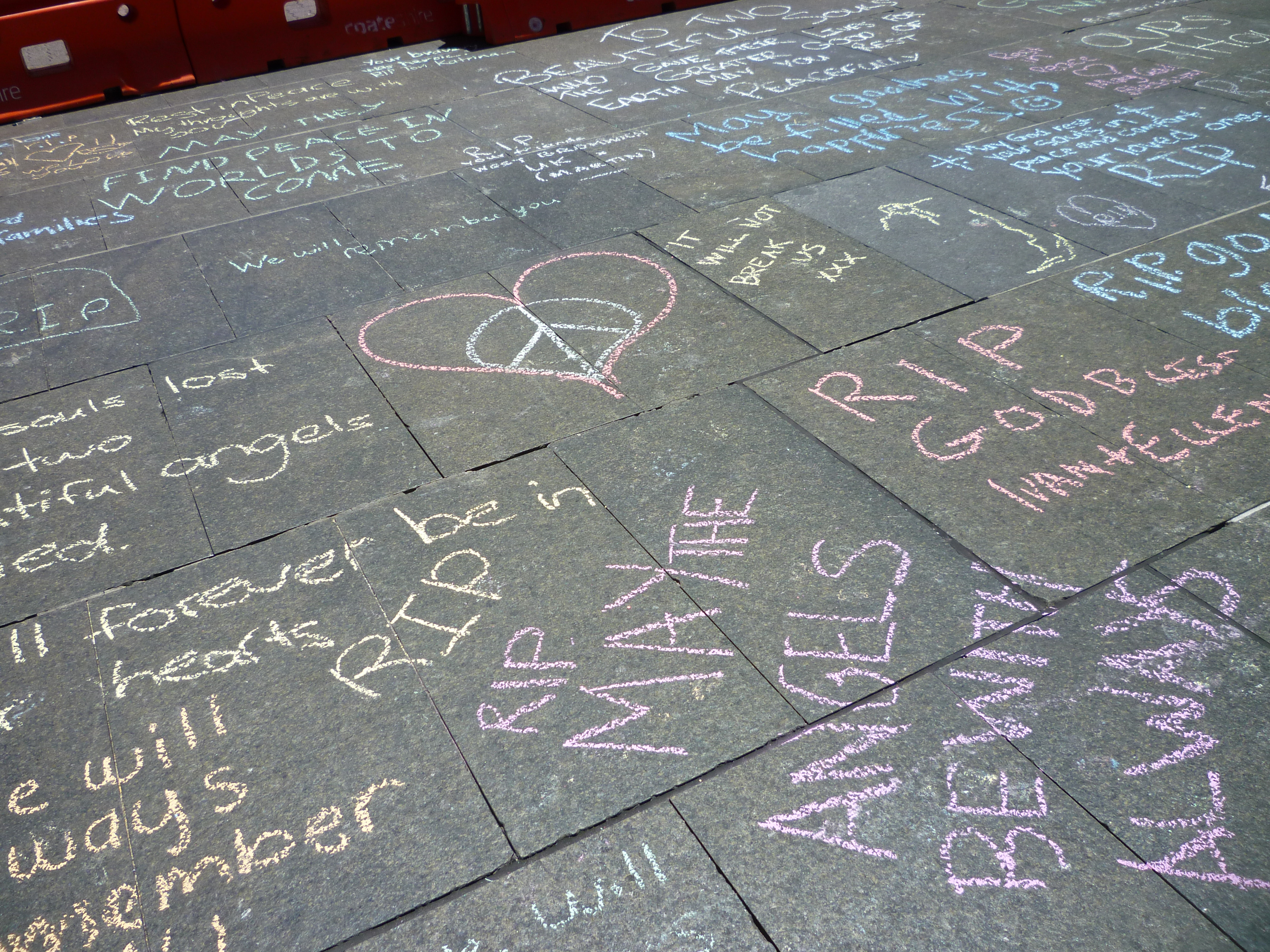 모니스는 인질범들이 유리창에 아랍어로 '무함마드는 신의 메신저다. 신은 오직 알라뿐’이라고 적힌 커다란 검은 깃발을 내걸도록 했다.[329] 인질들은 카페 창문 앞에서 흰색 아랍어 글자 (이슬람교의 신앙고백: "알라 외에는 신이 없고, 무함마드는 하나님의 사자이다")가 새겨진 검은 깃발을 들도록 명령받았다.[12][14] 일부 뉴스 보도는 처음에는 이 깃발을 이라크 레반트 이슬람 국가 (ISIL)가 사용하는 깃발로 오인했다.[13]