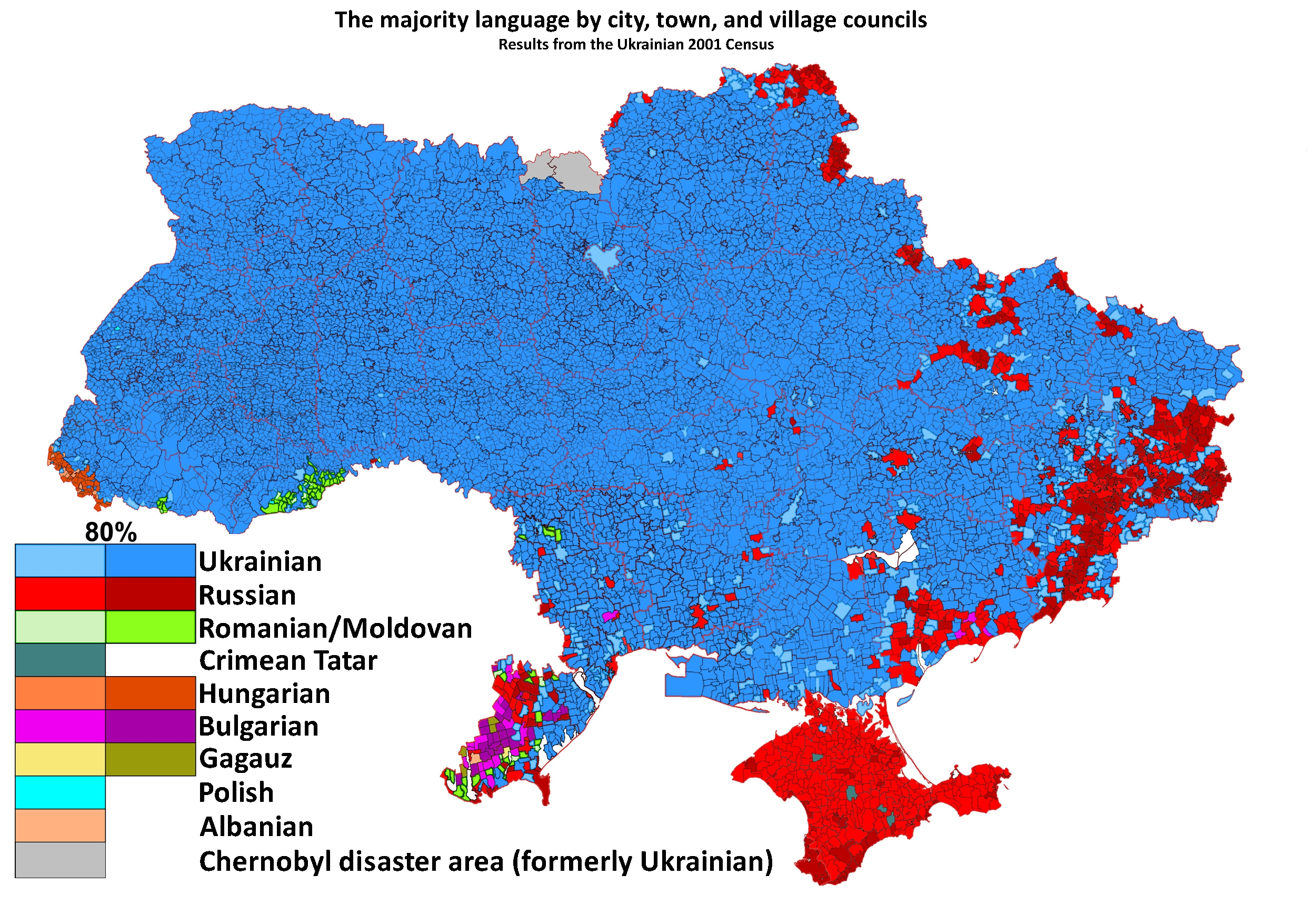2001년 우크라이나 인구 조사에 따르면 크림 자치 공화국의 인구는 러시아인 58.3%, 우크라이나인 24.3%, 크림 타타르인 12%이다. 세바스토폴은 러시아인이 71.6%, 우크라이나인이 22.4%이다.[19] 크림 반도 인구의 77%와 세바스토폴 인구의 94%가 러시아어를 모국어로 사용한다.[20]