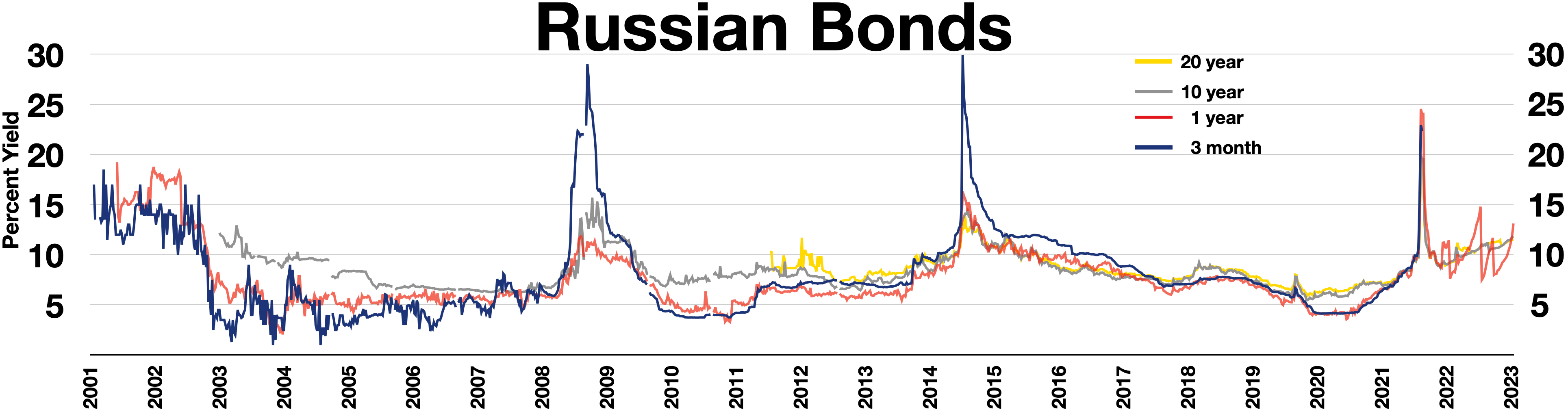 러시아 채권, 전쟁 기간 동안의 인플레이션 억제를 위한 역전된 수익률 곡선 (러시아-조지아 전쟁, 러시아-우크라이나 전쟁, 2022년 러시아의 우크라이나 침공)