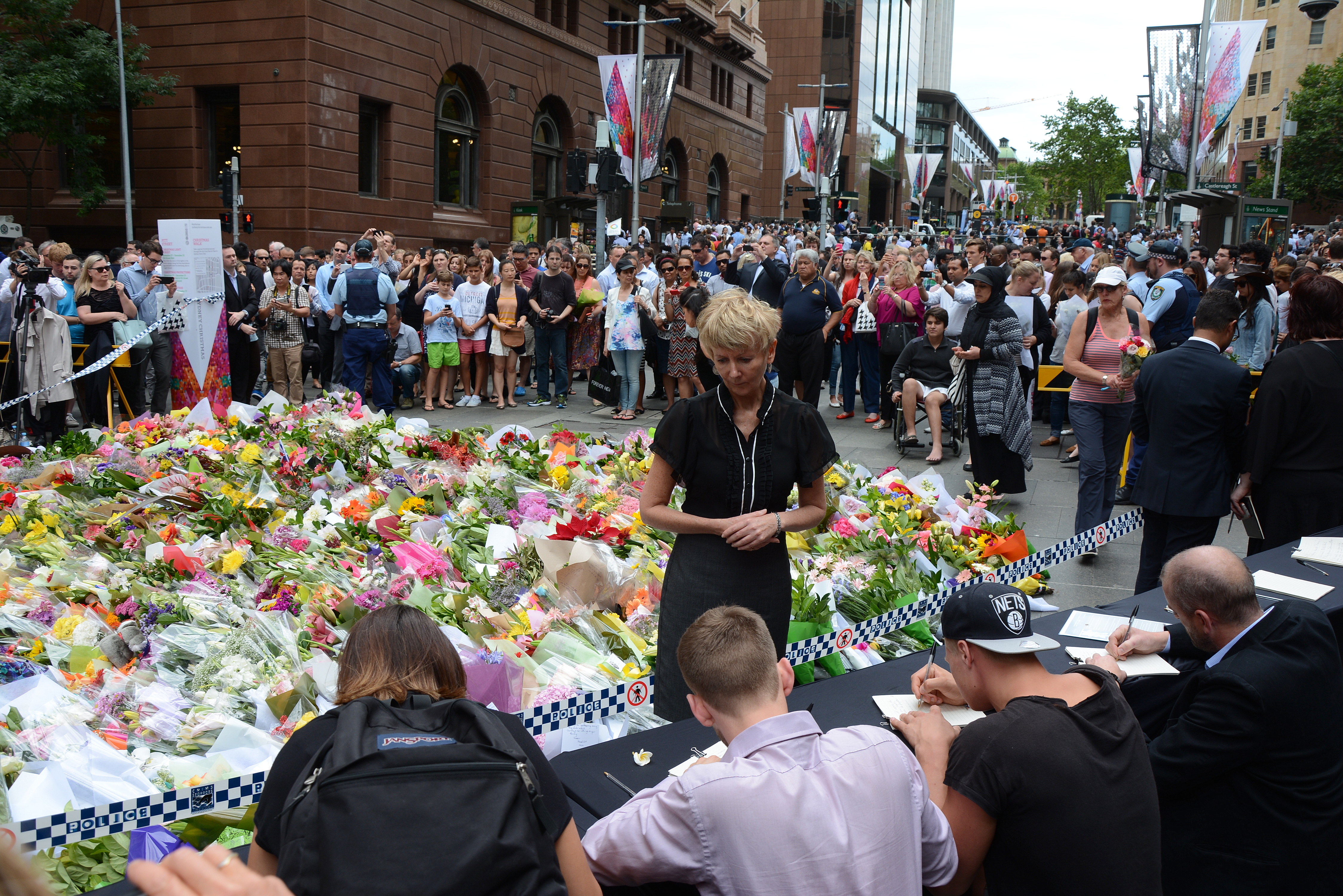 2014년 12월 15일 오전 8시 33분(시드니 현지 시간, AEDT), 이란 출신의 난민이자 이슬람 극단주의 성향을 가진 만 하론 모니스가[327] 시드니 시내 마틴플레이스 53번지에 위치한 린트 초콜릿 카페에 들어갔다. 이 카페는 세븐 뉴스 텔레비전 스튜디오 바로 맞은편에 있었으며, 오스트레일리아 연방 준비 은행, 커먼웰스 은행, 웨스트팩 은행, 마틴 플레이스 지하철역과 가까웠다.[24][25]