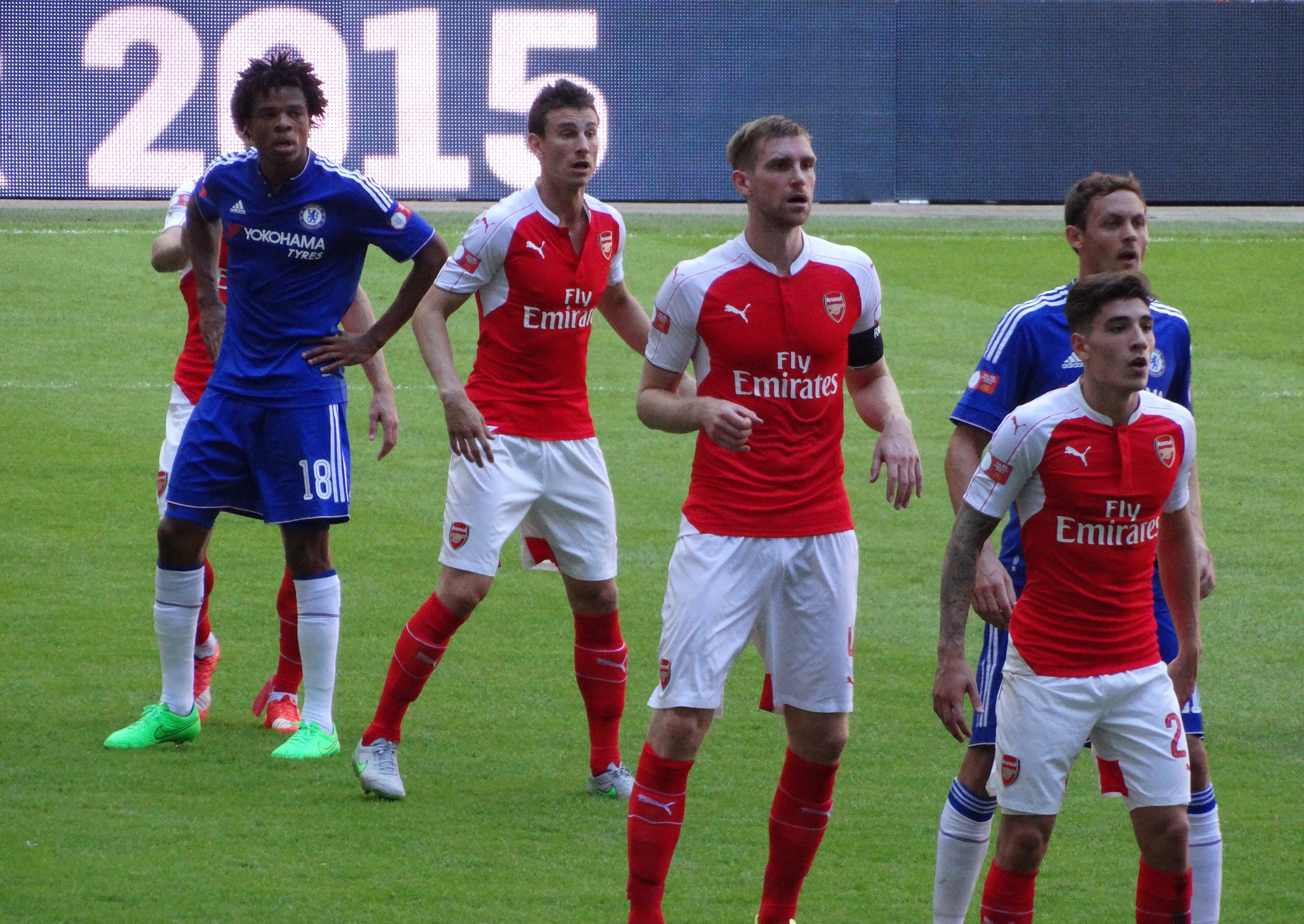 2015 FA 커뮤니티 실드 경기는 팽팽하게 진행되었다. 전반 24분, 알렉스 옥슬레이드체임벌린이 시오 월콧의 패스를 받아 세사르 아스필리쿠에타를 제치고 티보 쿠르투아 골대 왼쪽 상단 구석으로 슈팅, 아스널의 선제골을 기록했다.[25] 이는 첼시가 아스널을 상대로 506분 만에 허용한 첫 골이었다.[26]
