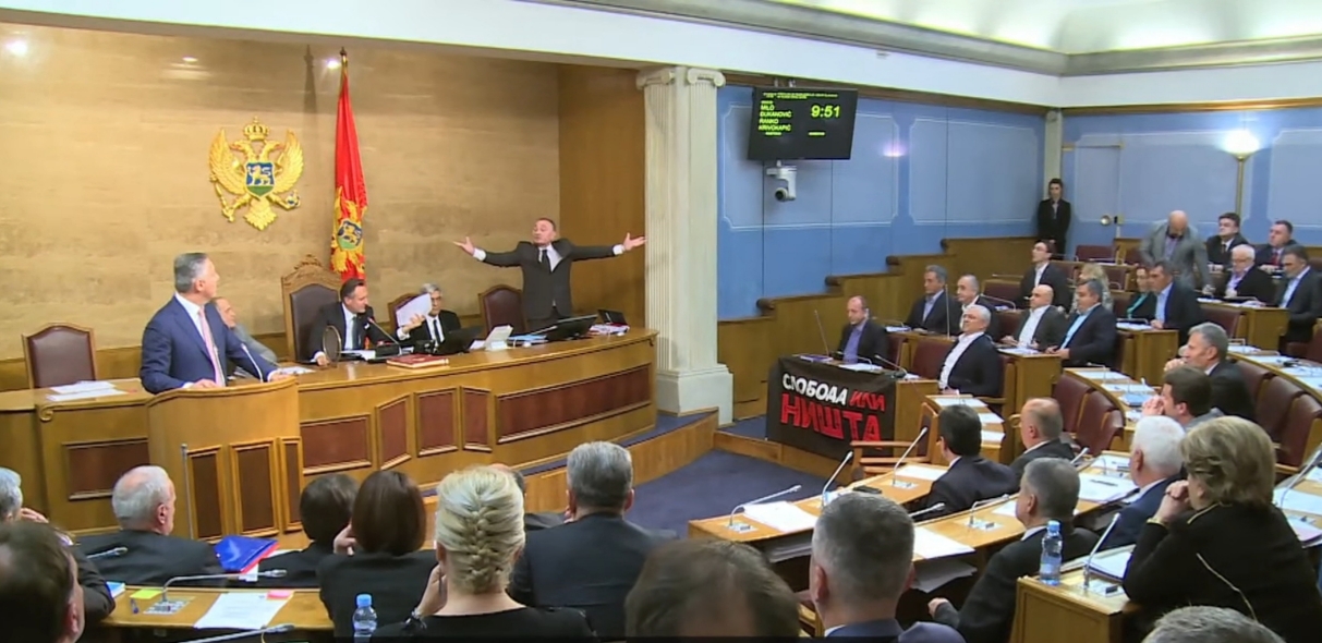 2016년 1월, 기존의 집권 연정이 분열되면서 몬테네그로 사회주의자민주당(DPS) 중심의 정부는 사실상 소수 정부로 기능하게 되었다. 이러한 정치적 불안정 속에서 2016년 5월 12일, 몬테네그로 의회는 선거 관리를 위한 임시 정부를 선출했다. 이 임시 정부는 사회주의자민주당과 여러 야당의 연합으로 구성되었다.[11]그러나 임시 정부 구성 다음 날인 2016년 5월 13일, 의회 내 갈등이 표출되었다. 밀로 주카노비치 총리가 의회에서 연설하는 도중, 몬테네그로 민주전선(DF) 소속 의원들이 "밀로, 도둑놈"(몬테네그로어 키릴: Мило, лопове / 라틴: Milo, lopove)이라고 외치며 연설을 방해했다. 이로 인해 주카노비치 총리와 민주전선 의원들 사이에 격한 언쟁이 벌어졌으나, 다른 의원들과 의회 경비대에 의해 제지되었다.[11]