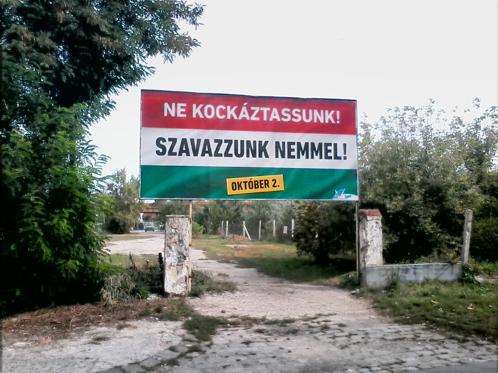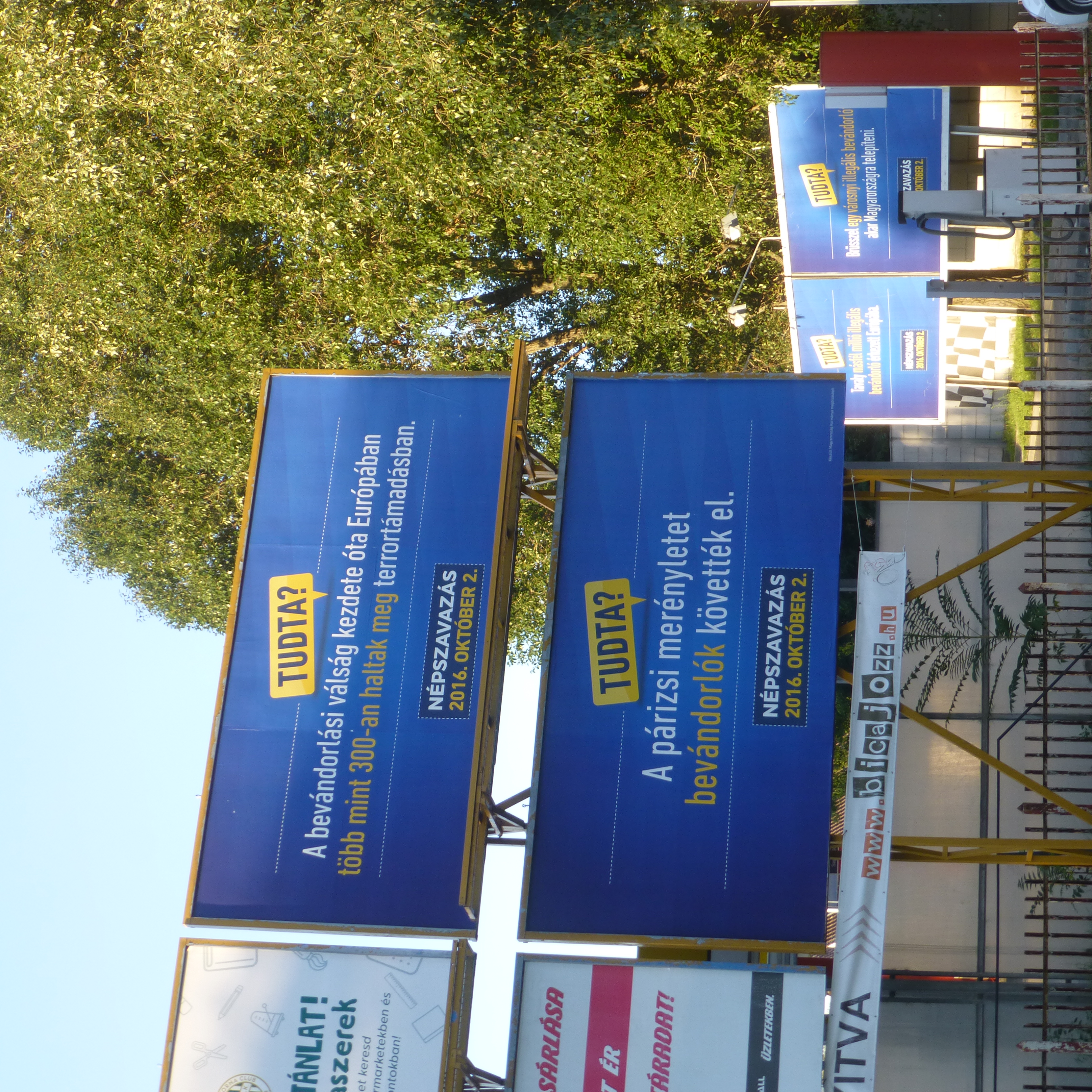 헝가리 정부는 2015년 유럽 난민 위기를 계기로 유럽 연합이 헝가리에 난민을 수용하려는 계획에 반대하며 국민투표를 추진했다. 오르반 빅토르 총리는 할당량 제도가 헝가리와 유럽의 민족적, 문화적, 종교적 정체성을 재구성할 것이라고 주장하며 "반대" 투표를 위한 캠페인을 벌였다.[7]정부는 대규모 예산을 투입하여 반(反)이민, 반(反)난민 정서를 자극하는 광고 캠페인을 진행했다. "알고 계셨나요?" 시리즈 광고판에는 다음과 같은 내용이 담겨 있었다.