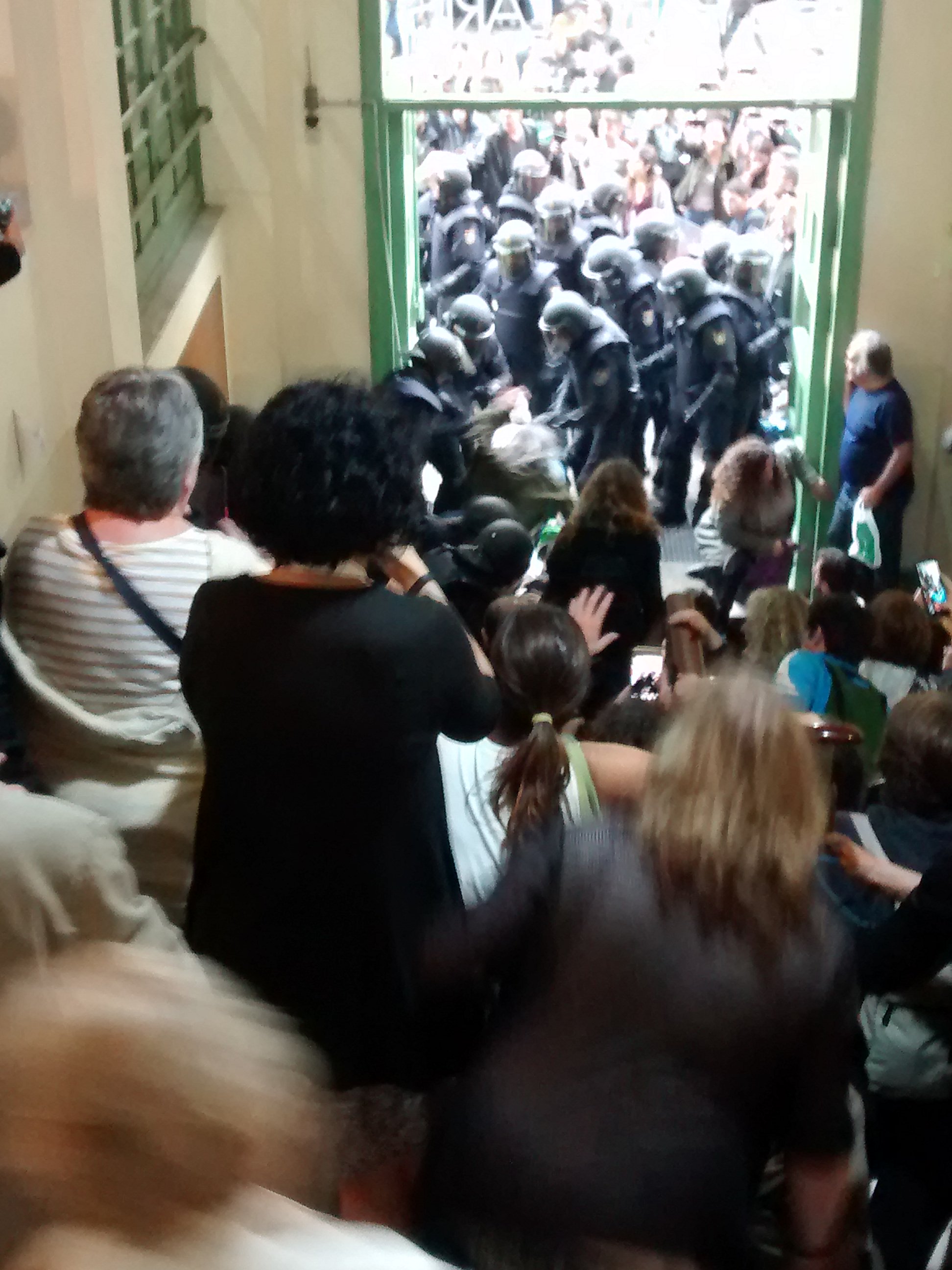 카를레스 푸지데몬 주 총리가 투표할 예정이었던 산 줄리아 데 라미스의 투표소에는 기동대가 강제로 진입하여 입구 유리를 파괴하고 투표소를 점거, 봉쇄했다.[419] 이 과정에서 투표를 위해 모여 있던 주민들과 충돌이 발생했다. 푸지데몬 총리는 경찰의 추적을 피해 다른 투표소인 코르넬라 데 테리에서 투표해야 했으며[258], 다리 밑 주차, 여러 대의 차를 갈아타는 등 헬리콥터의 감시를 피하며 이동해야 했다.[423]