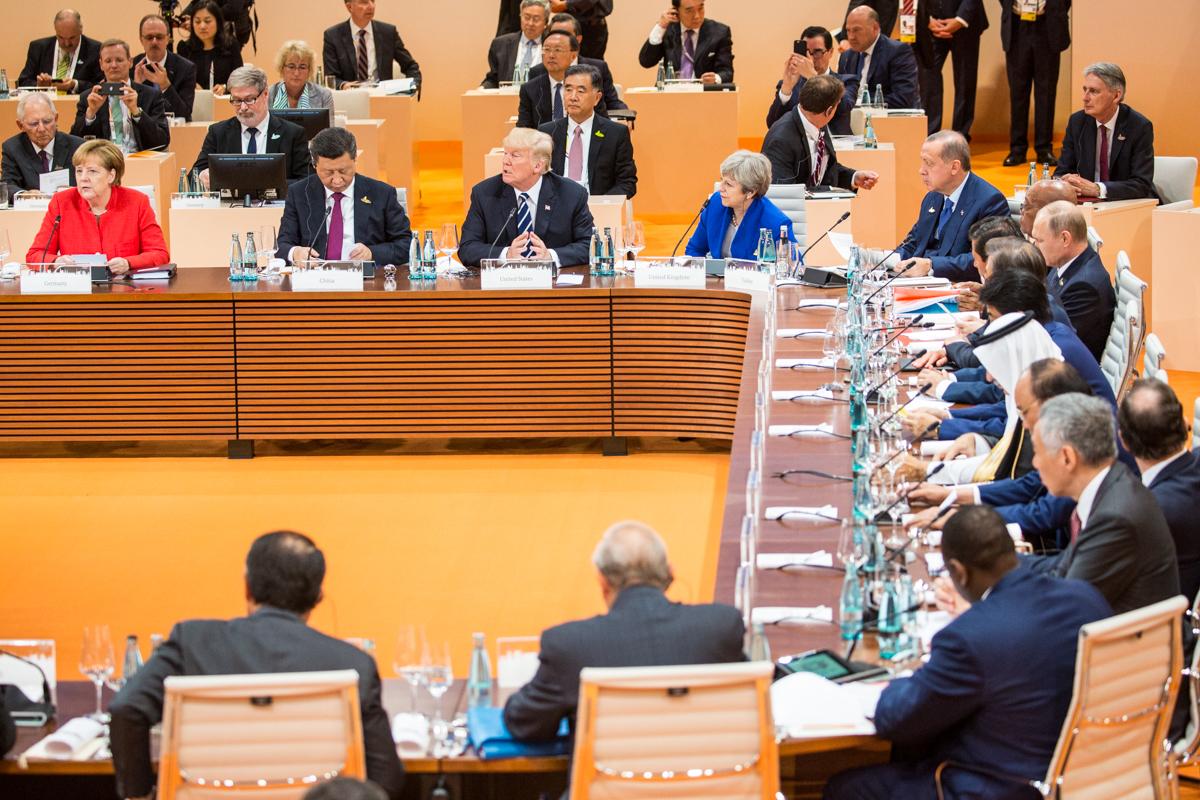 2017년 함부르크 G20 정상회의는 2017년 7월 7일부터 8일까지 독일 함부르크에서 개최되었다. 세계 경제 성장, 국제 무역, 금융 시장 규제 외에도 이민, 디지털화, 고용, 보건, 여성 경제적 권한 강화 및 개발 원조 등 "세계적으로 중요한 문제들"이 의제로 다루어졌다. 정상회의 결과 30페이지 분량의 요약 문서가 발표되었으며, 무역, 지속 가능한 발전, 포용적 성장, 여성 경제적 권한 강화, 난민 위기 및 이주, 테러 대응 및 국가 안보 등에 대한 논의가 이루어졌다. 회의 기간 동안 다양한 시위가 발생했으며, 시위대와 경찰 간의 충돌로 많은 부상자와 체포자가 발생했다.
