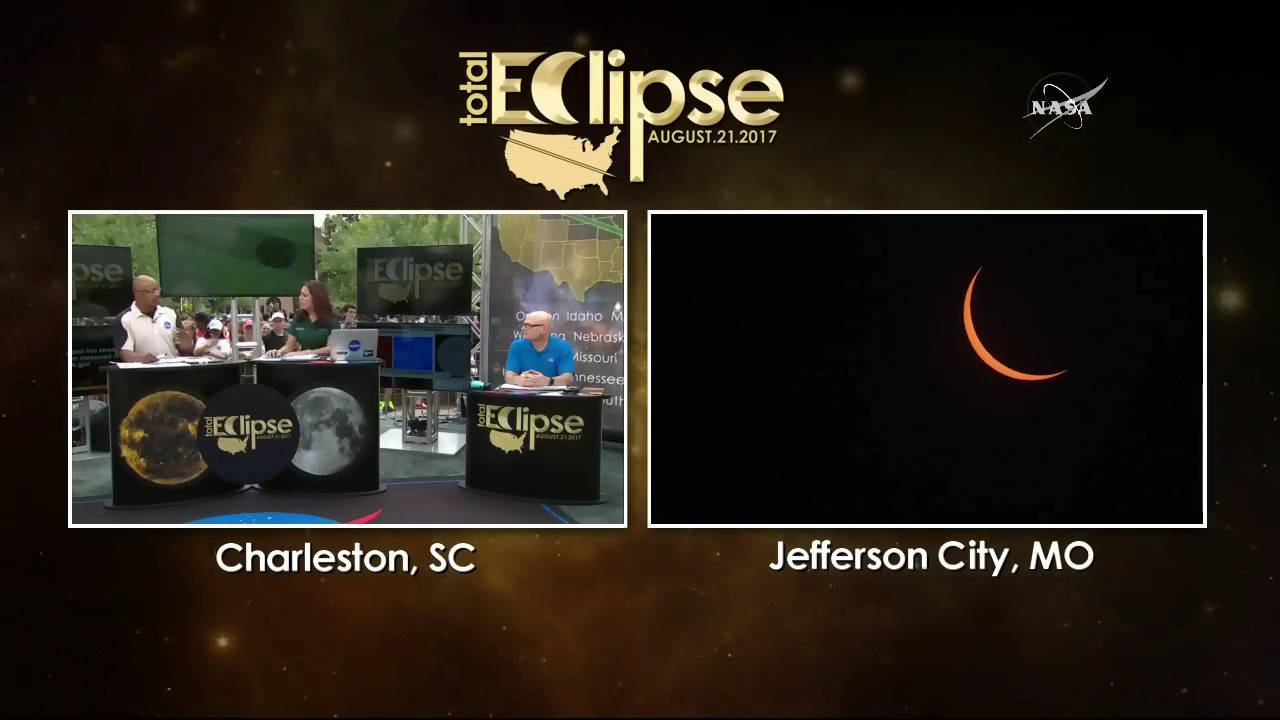 NASA는 NASA TV와 NASA Edge를 통해 스트리밍 방송을 제공했다.[97] ABC, CBS, NBC는 일식을 생중계하는 텔레비전 특별 방송을 했다. CNN, Fox News Channel, Science, The Weather Channel도 중계에 참여했다. PBS 시리즈 ''노바''는 페이스북에서 스트리밍 방송을 제공했으며, 나중에 "미국을 덮은 일식"이라는 특별 에피소드를 방영했다.[98][99]