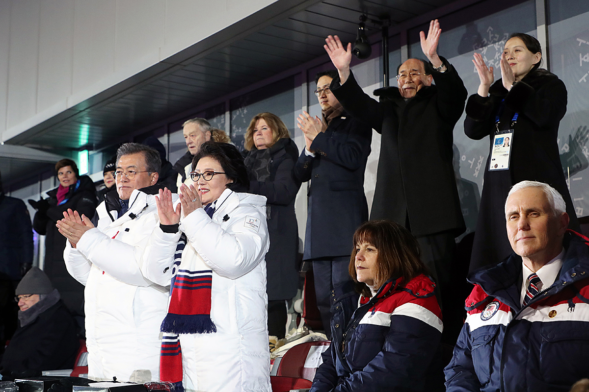 2018년 2월 9일, 김정은의 여동생 김여정은 대한민국 평창에서 열린 행사에 참석했다. 이는 한국 전쟁 이후 김씨 왕조의 일원이 처음으로 대한민국을 방문한 것이었다.[56] 김여정은 문재인 대통령과 악수를 한 후 함께 행사를 관람하기 위해 자리에 앉았다.[14]
