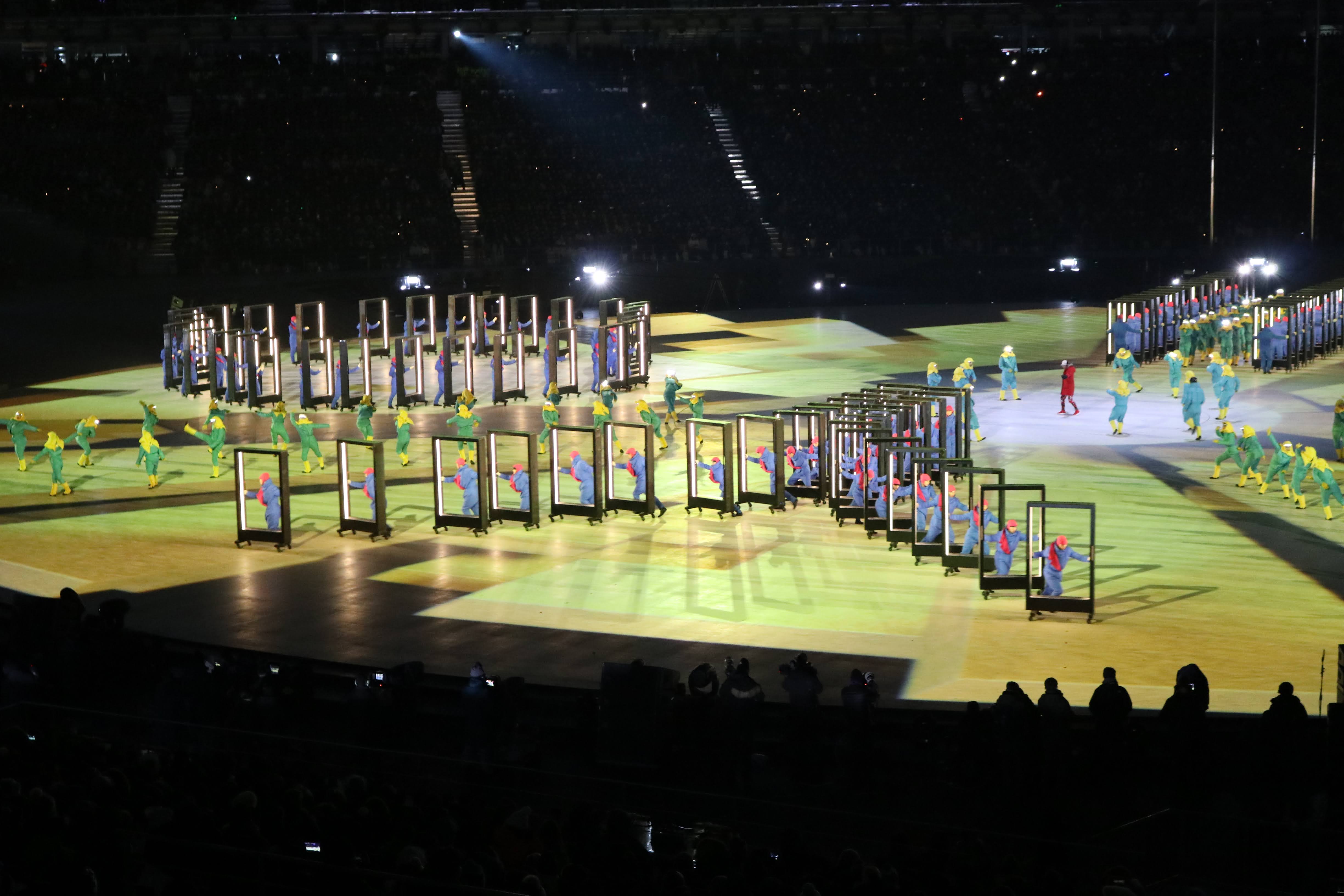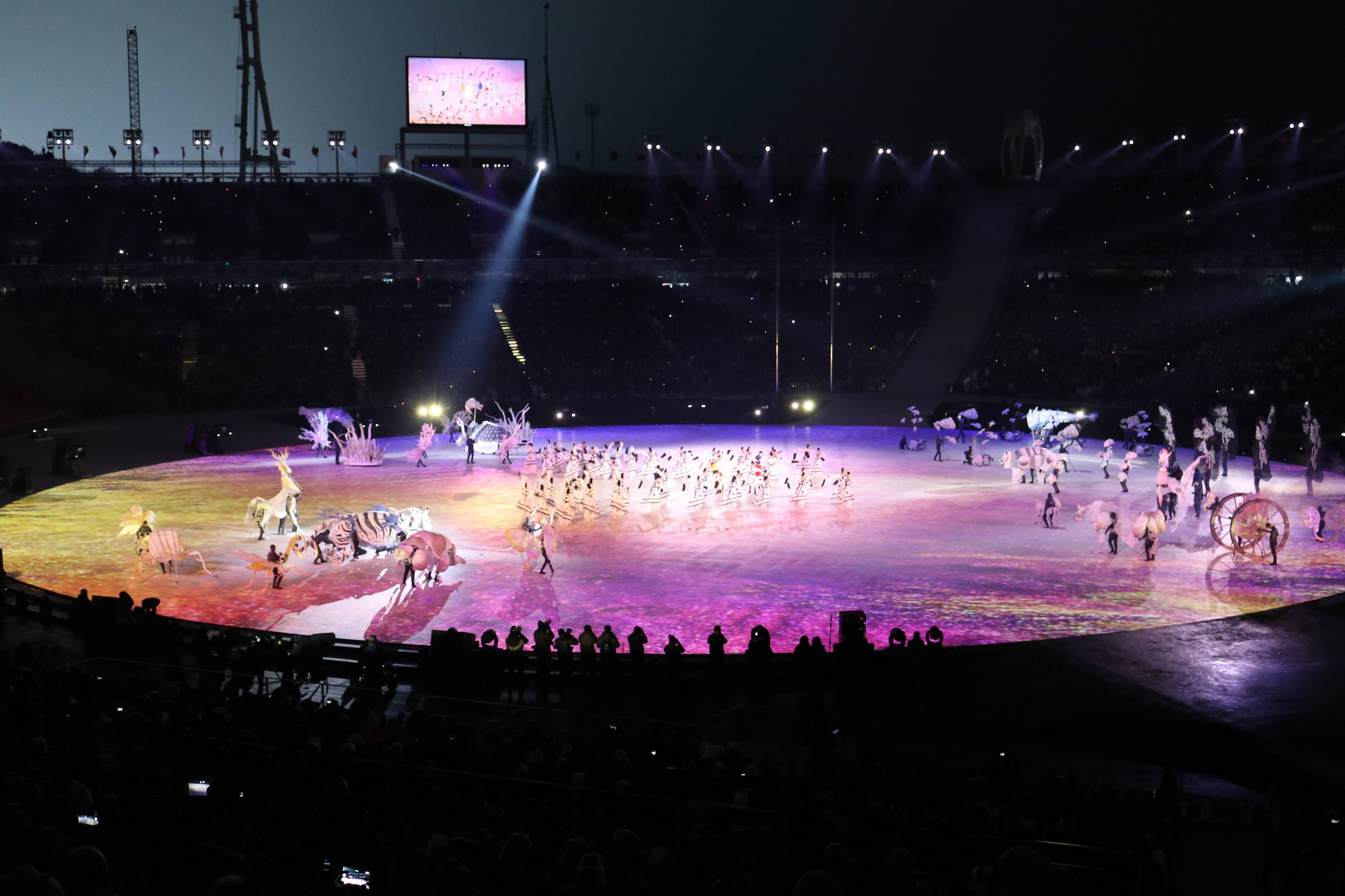 平昌五輪開会式に侵入者、パフォーマーに近づくも警備員に取り押さえ