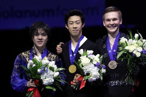 2018년 세계 피겨스케이팅 선수권 대회 남자 싱글 부문에서는 네이선 첸(미국)이 총점 321.40점으로 금메달을 차지했다.[16] 우노 쇼마(일본)는 273.77점으로 은메달을,[16] 미하일 콜야다(러시아)는 272.32점으로 동메달을 획득했다.[16]네이선 첸은 쇼트 프로그램과 프리 스케이팅에서 모두 1위를 기록하며 압도적인 기량을 선보였다.[16] 우노 쇼마는 쇼트 프로그램에서 5위를 기록했지만, 프리 스케이팅에서 2위를 차지하며 최종 순위를 끌어올렸다.[16] 미하일 콜야다는 쇼트 프로그램에서 2위를 기록했으나, 프리 스케이팅에서 4위에 그치며 동메달에 머물렀다.[16]
