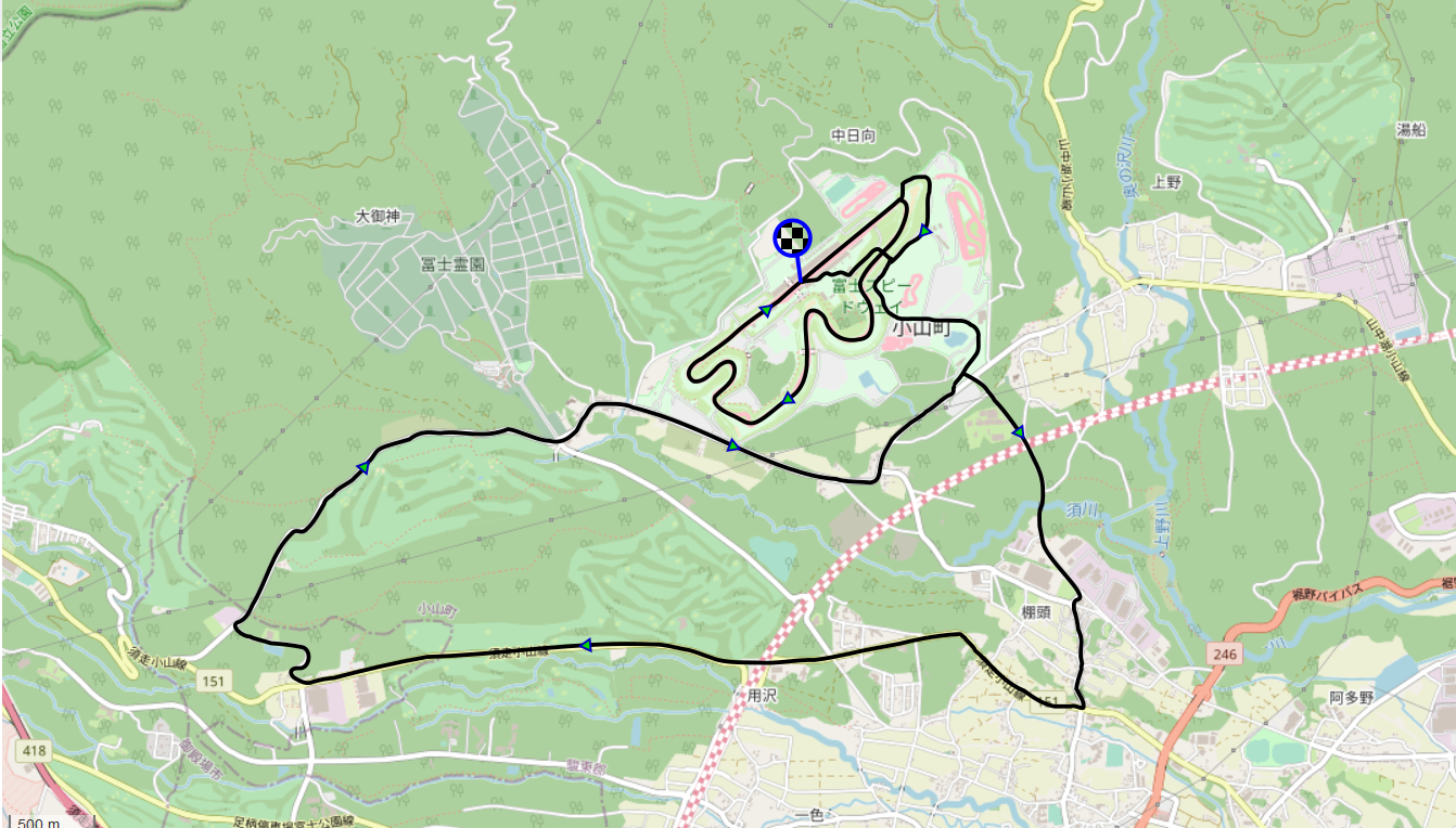 후지 스피드웨이 부근의 약 21km 코스를 남자 선수는 2바퀴, 여자 선수는 1바퀴 돈다. 1명씩 90초 간격을 두고 스타트하지만, 남자만 13명씩 3개의 그룹으로 나뉘어 있으며, 그룹 사이에는 38분 간격이 있다.