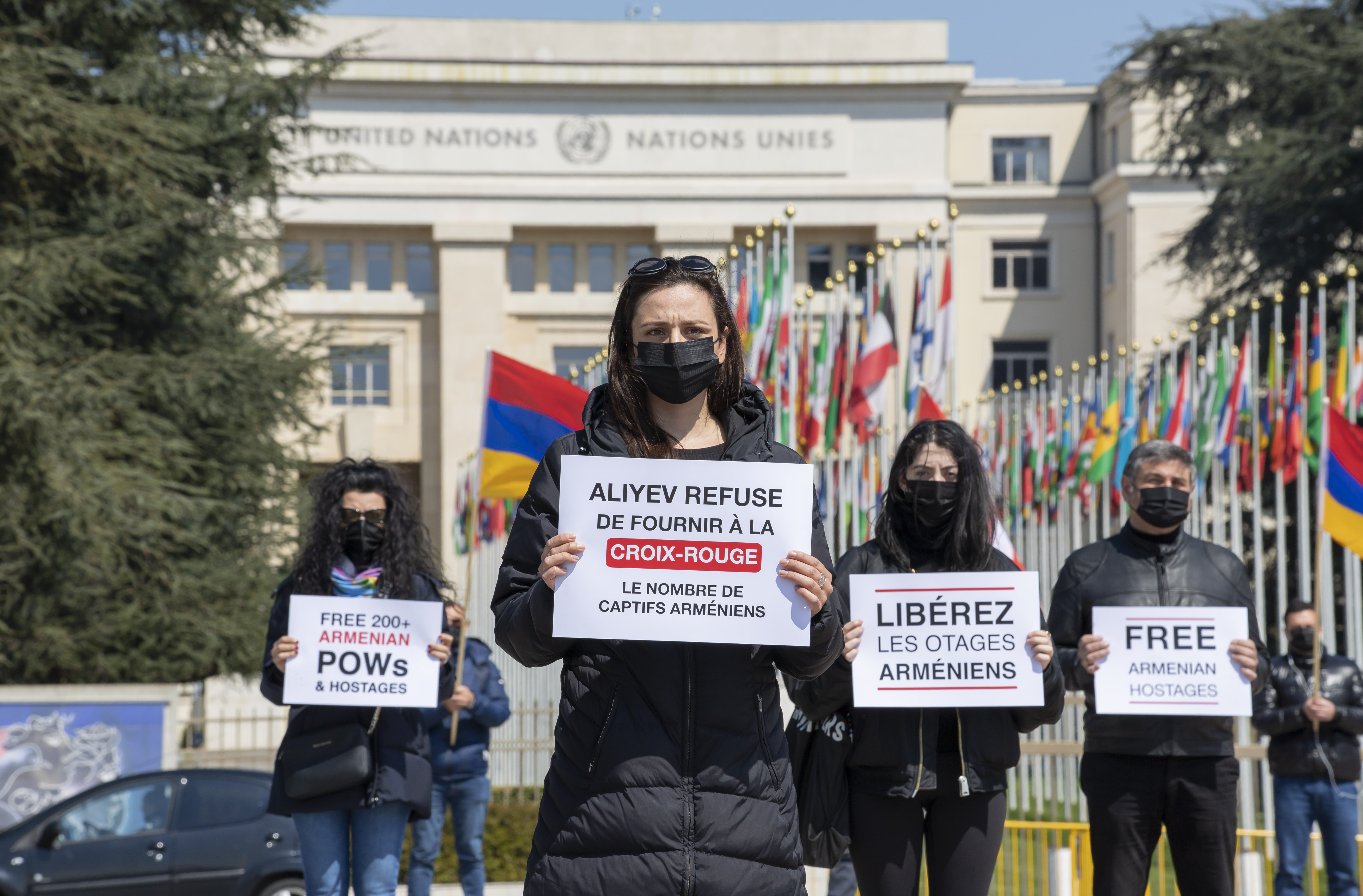 2021년 4월 15일, 아르메니아 포로 석방을 요구하는 시위대가 제네바에서 시위 - 러시아-터키 감시 센터: 러시아와 터키는 아제르바이잔에 공동 감시 센터를 설립하기로 합의했다.[58] 그러나 러시아는 터키의 역할을 나고르노카라바흐 외부로 제한하려 했다.[59]