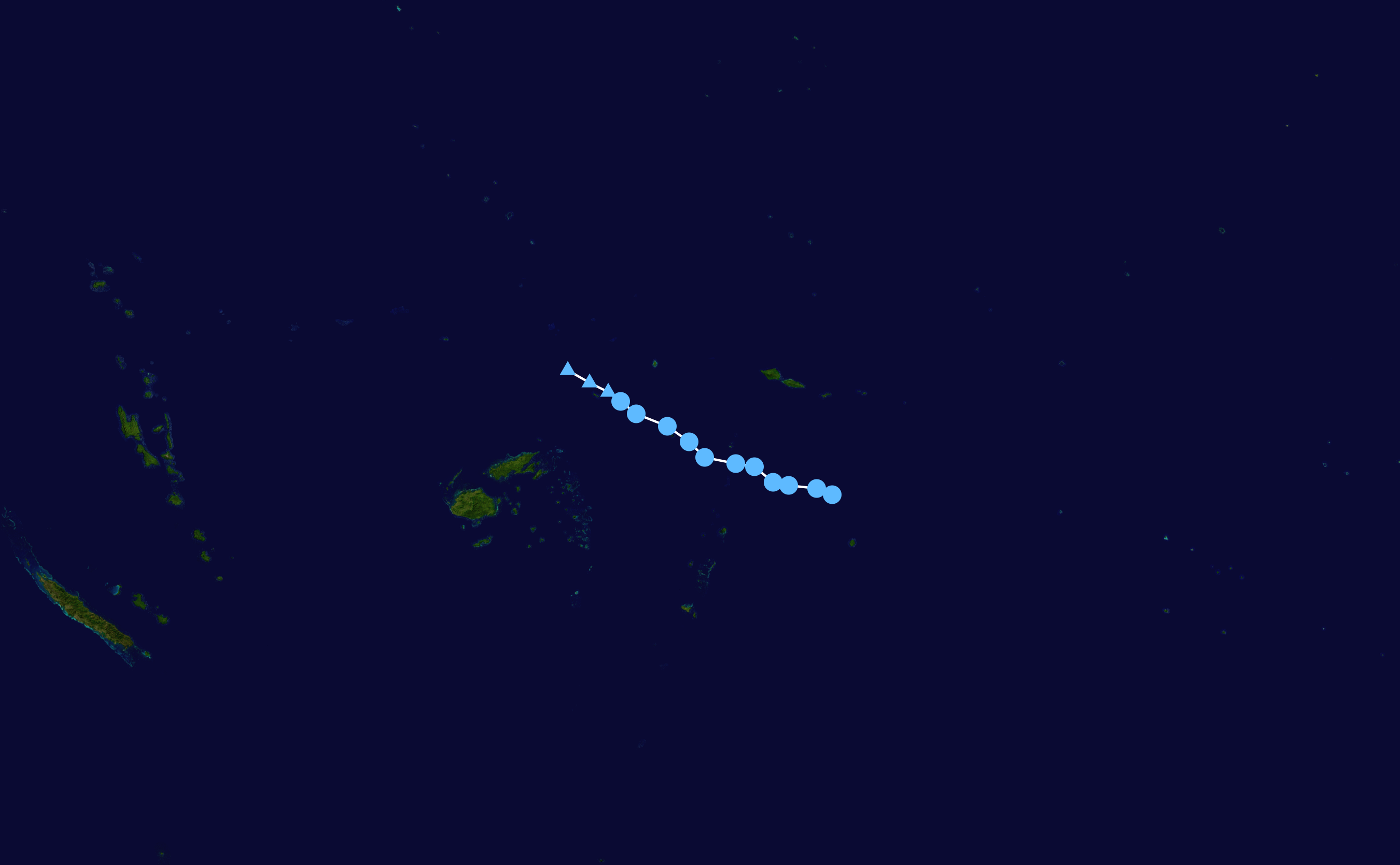최대 강도는 '열대 섭동(Tropical Disturbance)' 수준에 머물렀으며, 최대 풍속은 25노트(kn), 최저 기압은 999 hPa를 기록했다. 주로 바누아투 지역에 영향을 미쳤으나, 별다른 재산 피해나 인명 피해는 보고되지 않았다.