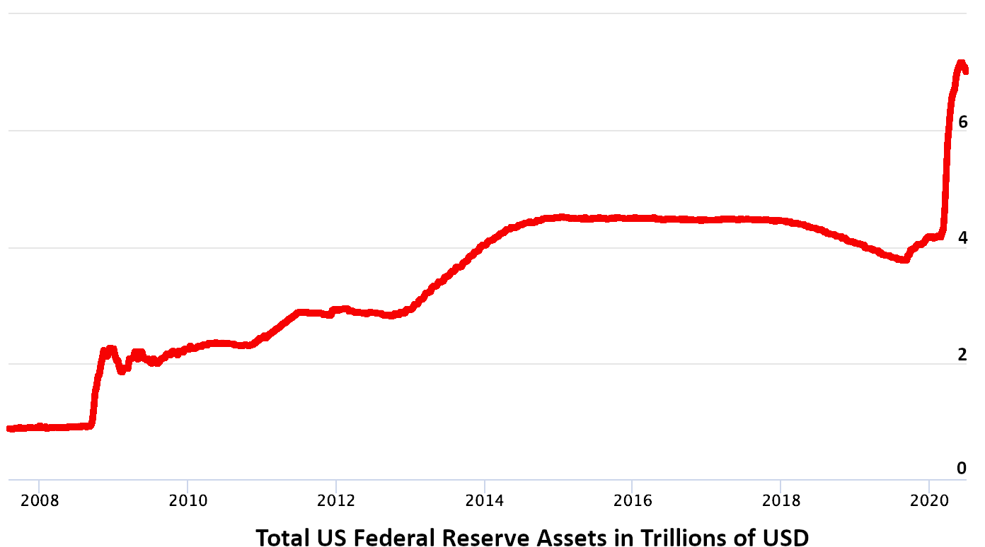 2007년~2010년 세계 금융 위기(리먼 브라더스 사태) 이후 최고치 부근에서 움직이던 주가는 미국에서 최초의 SARS-CoV-2 감염자가 확인된 2020년 1월 21일 이후에도 큰 영향을 받지 않았다. 그러나 2월 12일 다우존스 산업평균지수가 사상 최고치를 기록한 후, 2월 말부터 세계 각국의 주가가 급락했다. 2019년 코로나바이러스감염증 미국 유행이 본격화되기 시작한 3월 말부터 4월에 걸쳐 미국의 주식 시장에서 역사적인 급등(데드캣 바운스)이 발생하기도 했다. 각국의 중앙은행이 실시한 대규모 양적 완화 정책 등 경기 부양책의 영향으로 5월부터 6월 상순까지도 주가 상승세가 이어졌고, 6월 8일에는 다우존스 산업평균지수가 2만 7천 달러대를 회복했으며 나스닥 종합지수는 사상 처음으로 1만 포인트에 도달하기도 했다. 실물 경제의 회복을 수반하지 않는 주가의 급격한 상승에 대해서는 버블 경제(코로나 버블)라는 지적도 있다.[510]