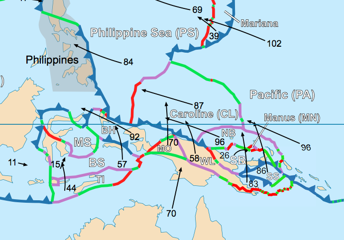 이번 지진은 오스트레일리아판이 태평양판을 향해 동쪽에서 동북쪽으로 이동해 섭입하는, 지질학적으로 매우 복잡한 지역에서 발생했다. 오스트레일리아판은 1년에 약 100mm 이동한다. 뉴기니섬 지역에서 발생하는 지진은 보통 두 대형 판의 대규모 수렴 작용과 남비스마르크판, 솔로몬해판, 우들라크판과 같은 여러 미판의 복잡한 상호 작용 속에서 발생한다.[60][5]2. 2. 피니스테레 산맥