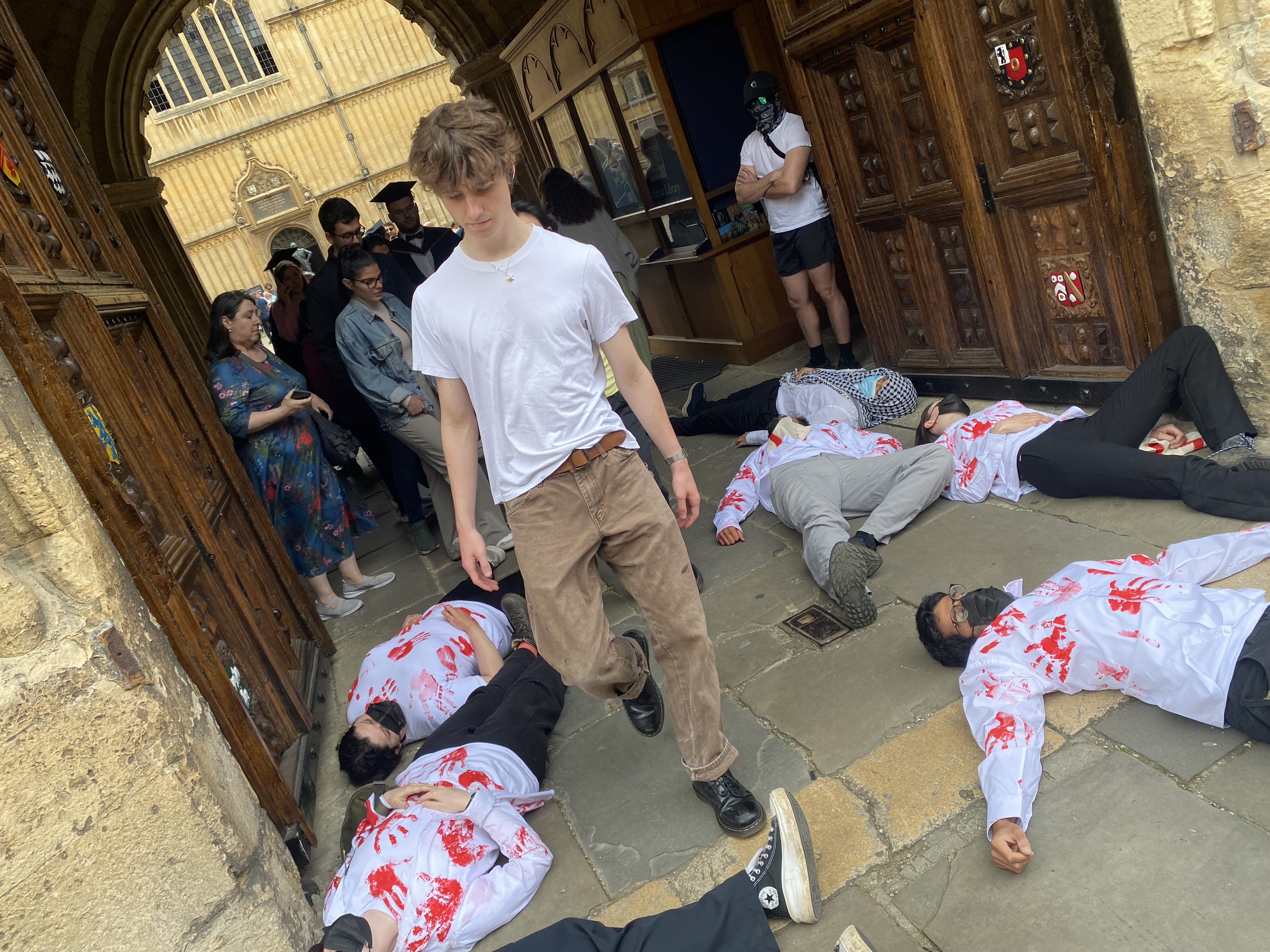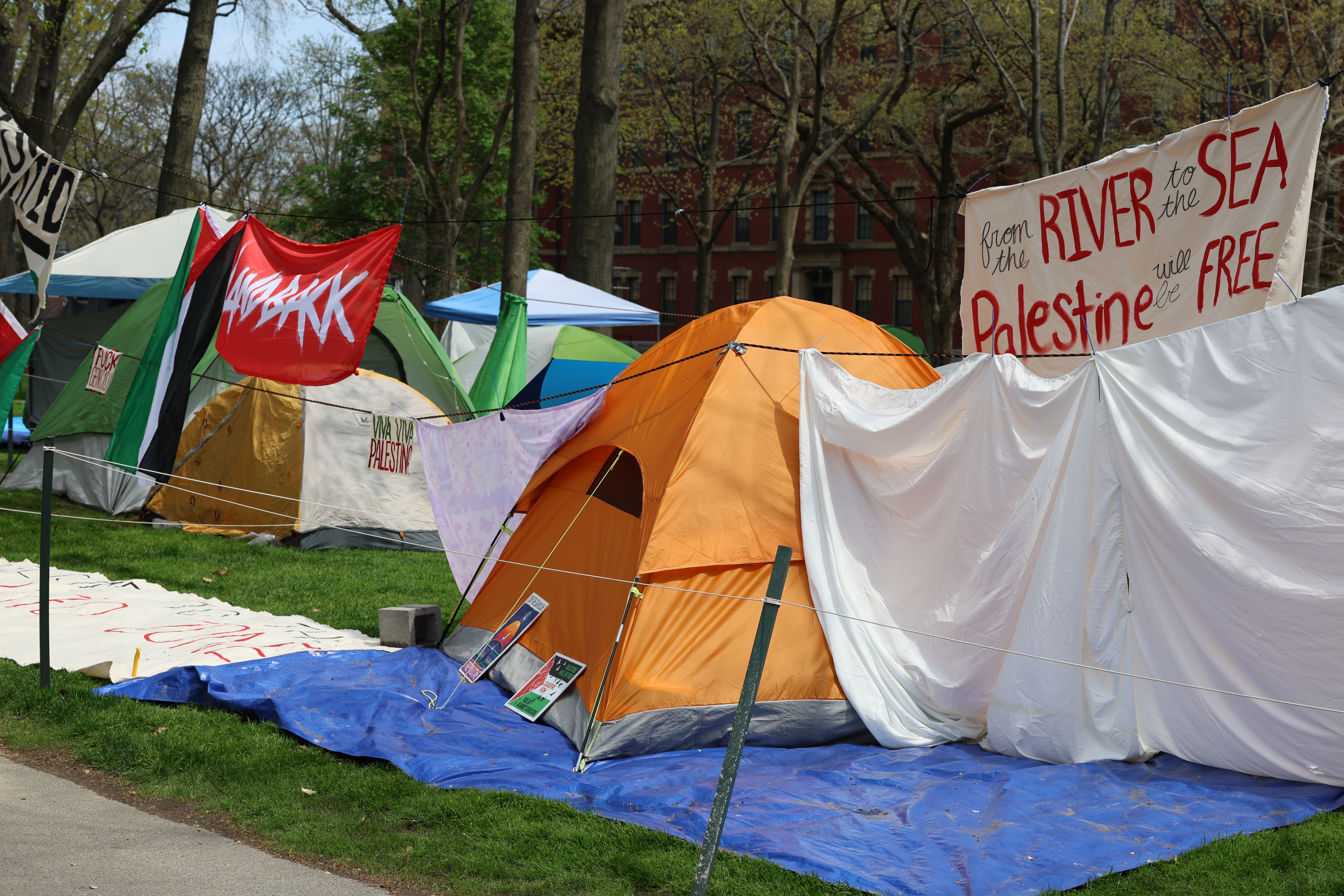 시위대는 이스라엘-하마스 전쟁에서 미국이 이스라엘을 지원하고, 이스라엘의 가자 지구 침공과 전쟁 범죄를 비판했다.[60][61] 이들은 보이콧, 투자 철회 및 제재(BDS) 운동의 일환으로, 학교가 이스라엘 및 관련 기업과의 재정적 관계를 단절하고, 이스라엘에 대한 미국의 군사 지원 중단을 요구했다.[28]