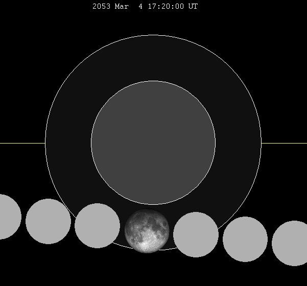 | 첫 번째 반그림자 내부 접촉 | 2053년 3월 20일 06:49:15.3 UTC |