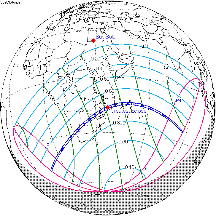 2095년 6월 2일 개기일식에 대한 상세 정보는 다음과 같다.[3]