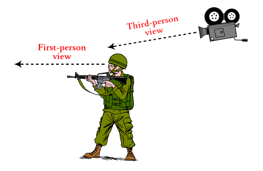 3인칭 슈팅 게임은 플레이어의 시점을 아바타에 고정시킨다는 점에서 1인칭 슈팅 게임과 밀접한 관련이 있다.[39] 단지 플레이어 카메라의 위치에 약간의 변화가 있을 뿐이다.[6] 1인칭 시점은 플레이어가 아바타에 의해 시야가 가려지는 일 없이 조준하고 쏠 수 있게 해주는 반면,[5] 3인칭 슈팅 게임은 주인공을 "오버 더 숄더 샷" 또는 "등 뒤" 시점으로 보여준다.[39][7] 따라서 3인칭 시점은 게임 디자이너가 더욱 특징적인 아바타를 만들 수 있게 해주며,[5] 영화를 보는 것처럼 플레이어의 시선을 유도한다. 반대로, 1인칭 시점은 플레이어에게 게임 세계에 대한 몰입감을 더 높여준다.[8]3인칭 슈팅 게임은 플레이어가 아바타 주변의 영역을 더 명확하게 볼 수 있게 해준다.[5] 이 시점은 ''기어스 오브 워''에서와 같은 전술 시스템의 사용[9] 또는 좁은 공간에서의 이동과 같이 캐릭터와 주변 환경 간의 더 많은 상호 작용을 용이하게 한다.[10] 따라서 3인칭 시점은 플랫폼 위로 점프하거나, 근접 전투를 벌이거나, 차량을 운전하는 등 게임 세계의 물체와 상호 작용하는 데 더 적합하다. 그러나 3인칭 시점은 정밀한 조준이 필요한 작업에 방해가 될 수 있다.[11]
