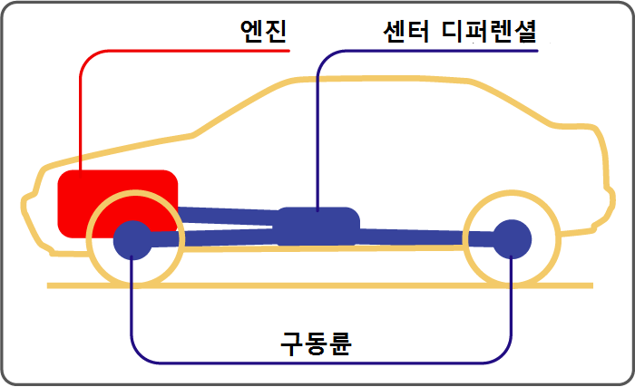AWD (All-Wheel Drive) | 자동적으로 네 바퀴에 동력 분배 주로 승용차 및 SUV에 사용 |