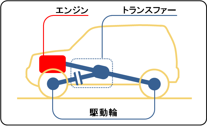 - 직결식 4륜구동: 가장 원시적인 방식으로, 센터 디퍼렌셜이나 트랜스퍼가 없어 일반 도로 주행에는 부적합하다. 초기 4륜구동 차량이나 일부 군용 차량, 농업용 차량에 사용된다.