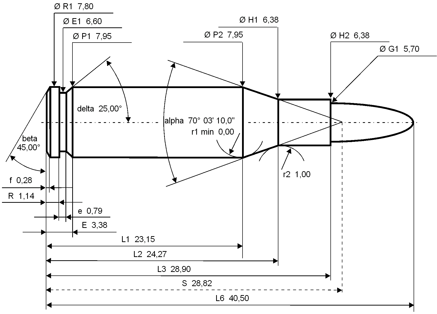 탄두 직경5.70 mm