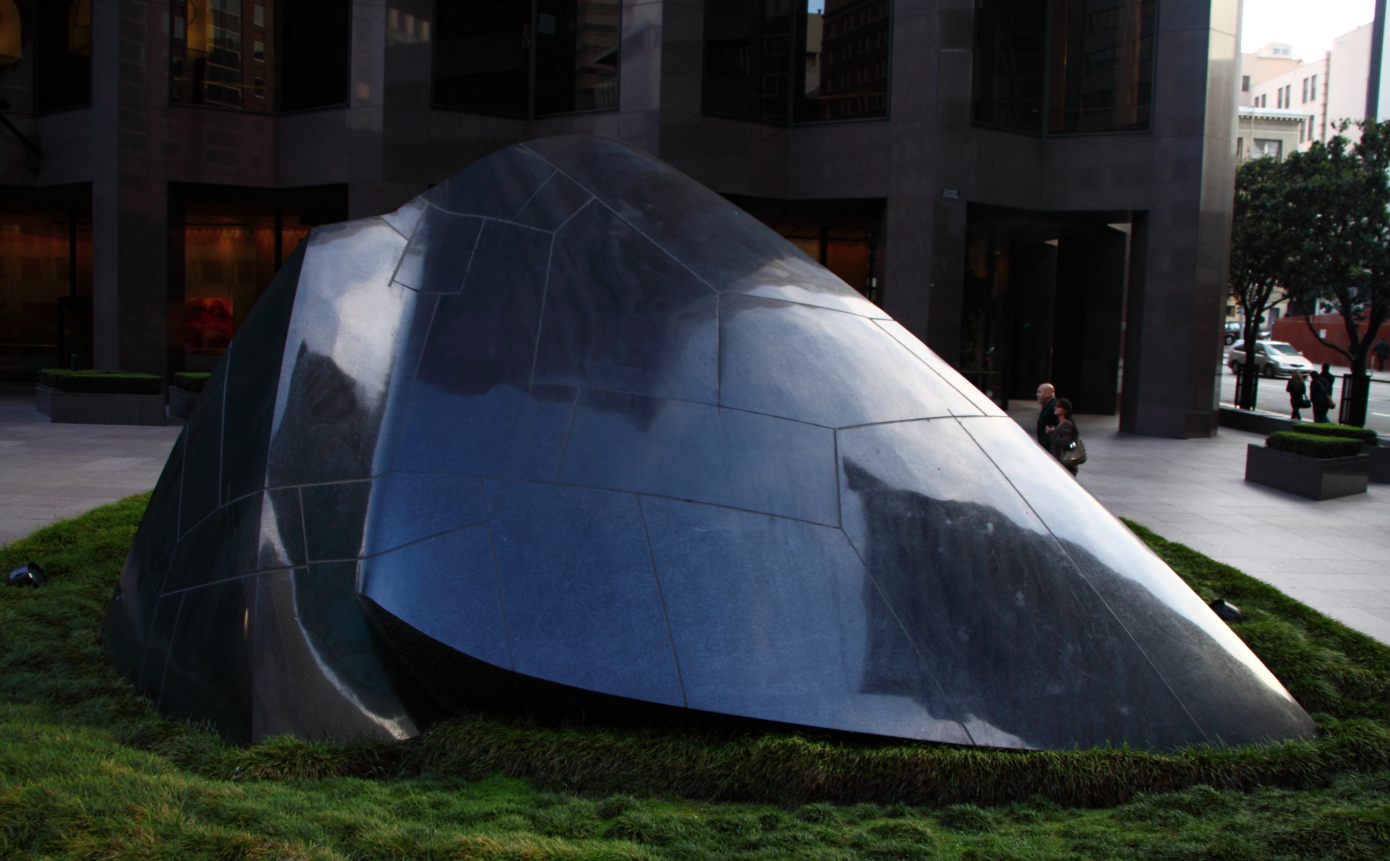 광장에는 200톤 무게의 검은색 스웨덴 화강암 조각 작품인 마사유키 나가레의 "Transcendence"가 있는데, "Banker's Heart"라는 별칭으로 불린다. 건물, 은행 홀, 광장, 계단, 인도 등 거의 전체 블록이 고가의 광택 또는 거친 칼세도니 화강암으로 덮여 있다. 52층에는 "Carnelian Room"이라는 레스토랑이 있었으나, 2009년 새해 전야에 문을 닫았다.