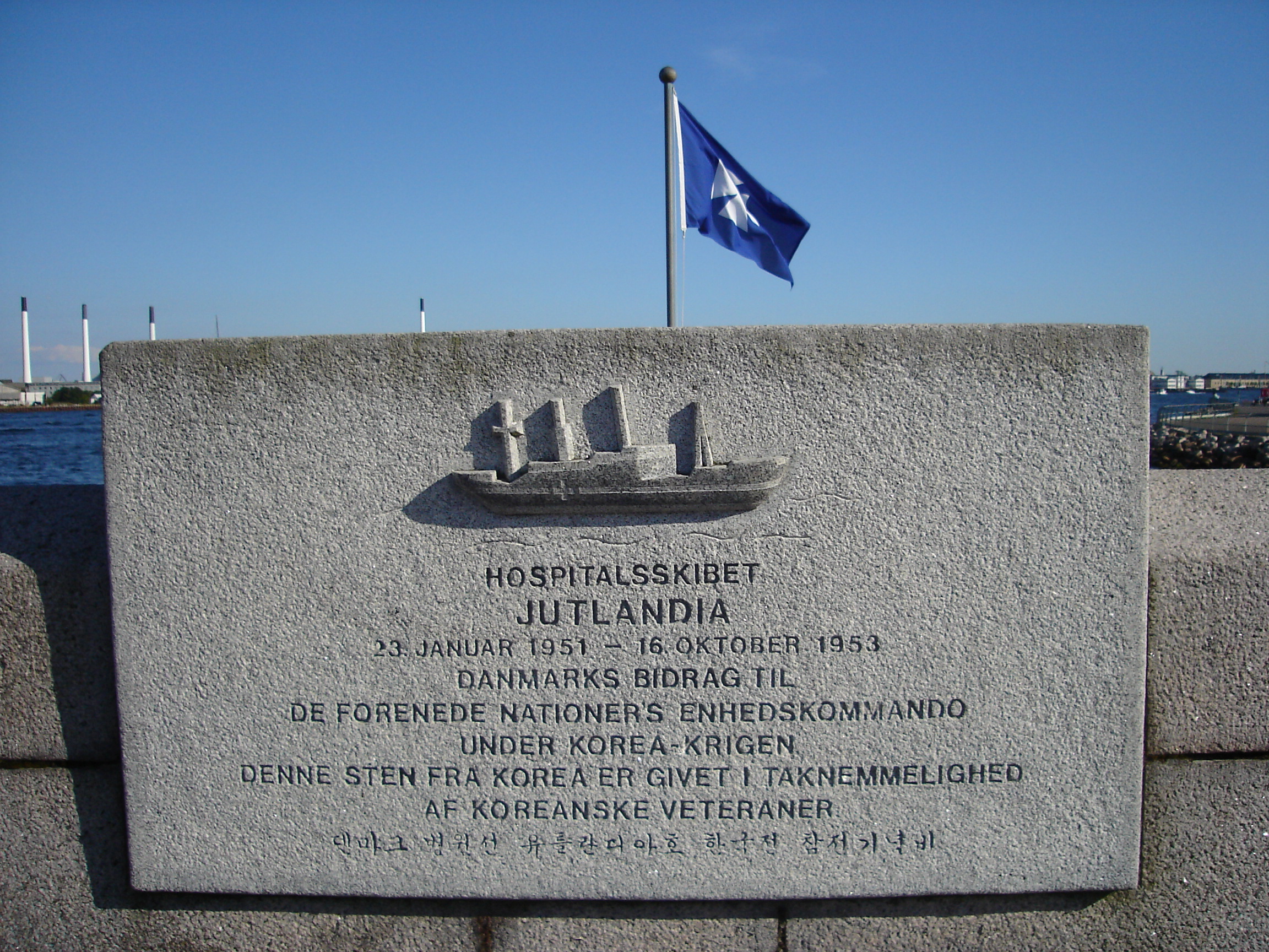 덴마크는 6.25 전쟁 당시 의료지원단을 파견한 5개국 중 3번째로 의료지원을 하였다. 덴마크 적십자사 소속 병원선인 유틀란디아 호를 파견하여 부산항, 인천항 등에서 의료 지원을 수행하였고, 유럽 각국 부상병 및 송환 포로 수송 등 인도주의적 활동을 전개했다.[42][43]