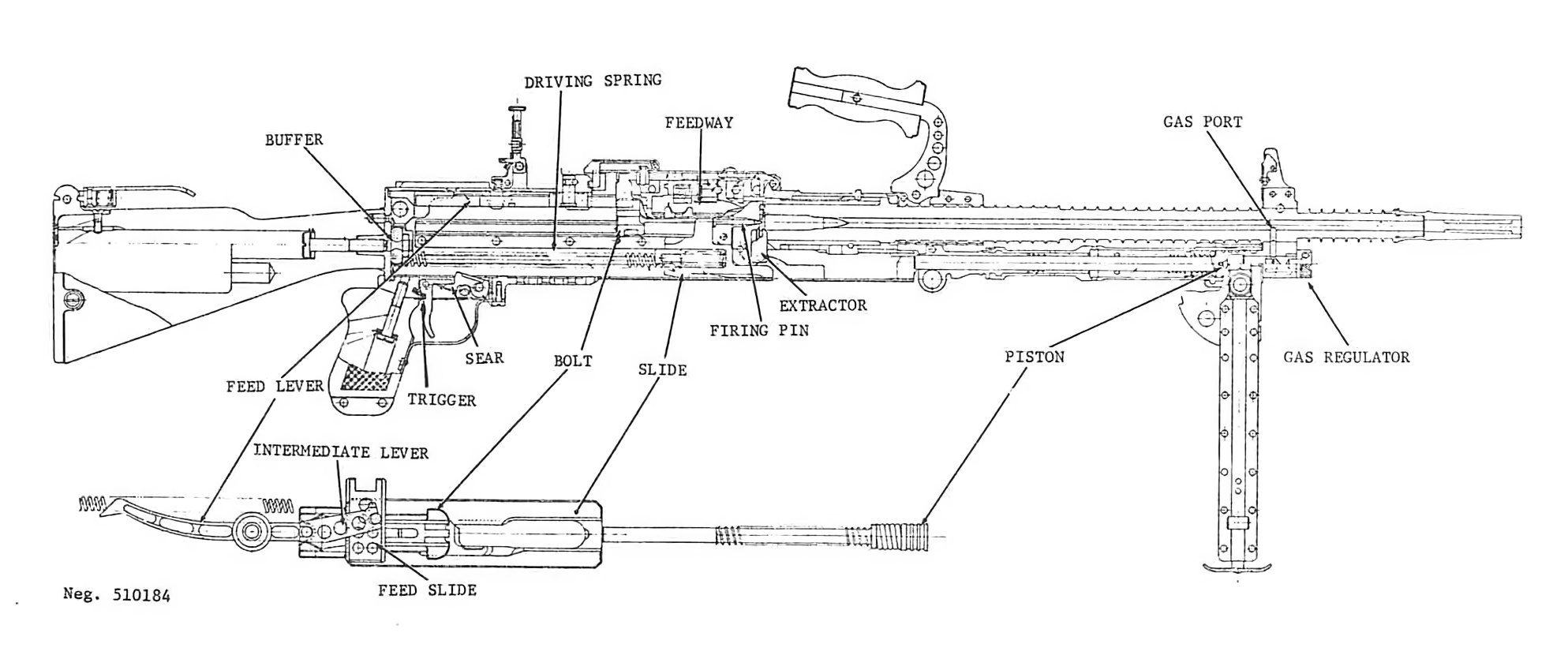 : 73식 소형 트럭 (구형)의 차량 탑재 기관총으로 등장하며, 전국 무사들을 사격한다.[2] 작중에 등장하는 것은 64식 7.62mm 소총과 마찬가지로 영상 작품용 소품총 제작 대기업인 토이다 공업이 제작한 전기 착화식 레플리카이다.[2] 실물과는 프런트 사이트 기부가 굵은 원통형으로 되어 있고(이 부분에 발화용 화약이 내장되어 있음), 기관부 탄피 배출구 주변에는 캔버스제 탄피 받이가 장착되어 있다는 점이 다르다.[2]