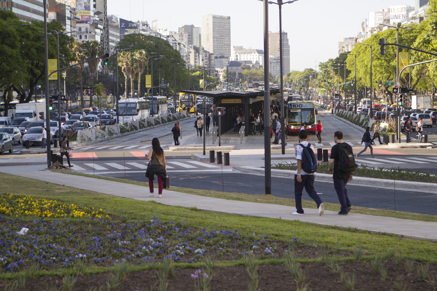 7월 9일 대로를 건너려면 모든 교차로에 신호등이 있어 몇 분이 걸린다. 일반적인 보행 속도로는 두세 번의 녹색 신호등이 켜져야 건널 수 있다.[7] 일부 도시 계획가들은 대로 양쪽 사이의 "심연"으로 인식되는 부분을 완화하기 위해 대로 중앙 부분을 지하로 옮기는 프로젝트를 제출했다.[7]3. 3. 메트로버스 (MetroBus)