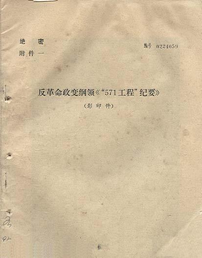 중국 정부에 따르면, 린뱌오는 마오쩌둥이 더 이상 자신을 신뢰하지 않는다는 것을 알고 최고 권력을 잡으려는 강한 욕망을 품게 되었다.[3] 1971년 2월, 린뱌오와 그의 아내 예췬은 마오쩌둥 암살을 계획하기 시작했다. 같은 해 3월, 린뱌오의 아들 린리궈는 상하이에서 공군 고위 장교들과 비밀 회의를 열고, '571 공정 개요'라는 쿠데타 계획을 세웠다고 한다. 중국어에서 "571"(五七一)은 "무장 봉기"(武起义)와 발음이 같다.[3]