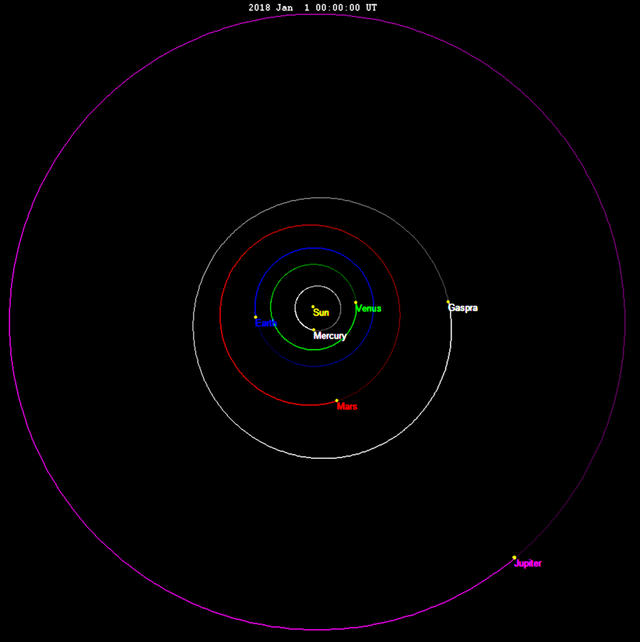 가스프라는 평균 약 2.21 천문 단위 거리에서 태양을 공전하며, 공전 주기는 3.29년이다.