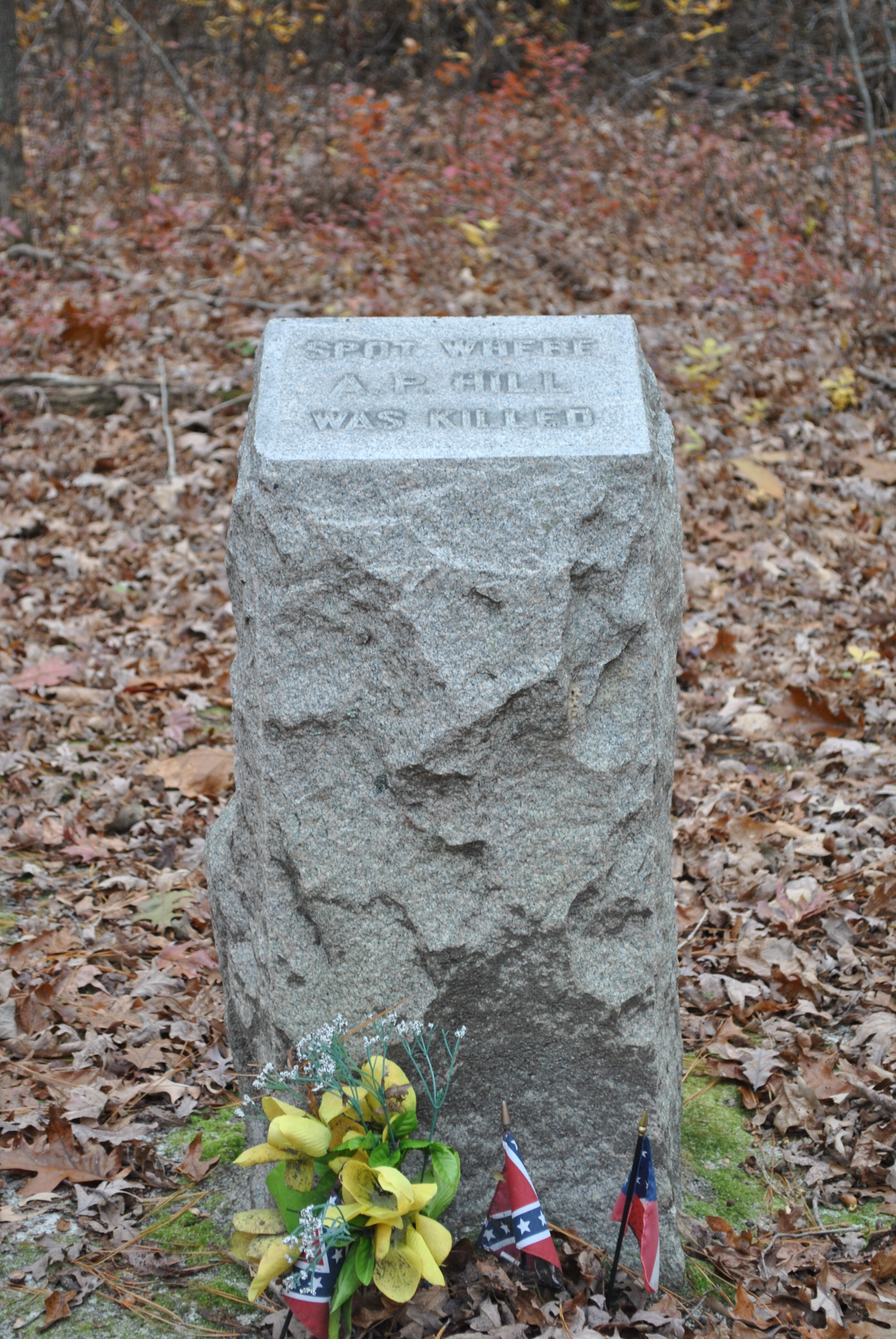 버지니아주 리치먼드는 '기념비의 도시'라고 불렸는데, 허미테지 도로 역사지구의 라버넘 애비뉴와 허미테지 도로 교차로 중심에 A.P. 힐의 기념비가 있었다. 이 기념비는 리치먼드에서 개인이 매장된 유일한 기념비였다.[65] 1892년 5월 30일 헌정된 이 기념비의 기단에는 개발자 루이스 긴터가 기증한 부지에 힐의 유해가 안치되어 있었다.[61] 카스파르 부베를이 윌리엄 루드웰 셰퍼드의 디자인을 바탕으로 제작한 힐의 청동상이 기념비 꼭대기에 있었다.[62]