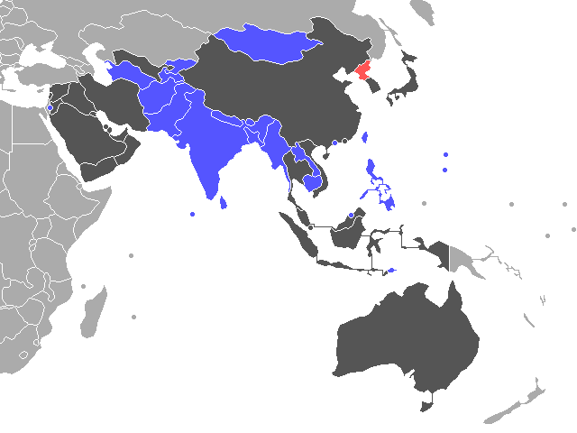 AFC 챌린지컵 참가 자격 (파란색: 참가 자격, 빨간색: 이전 참가국)
