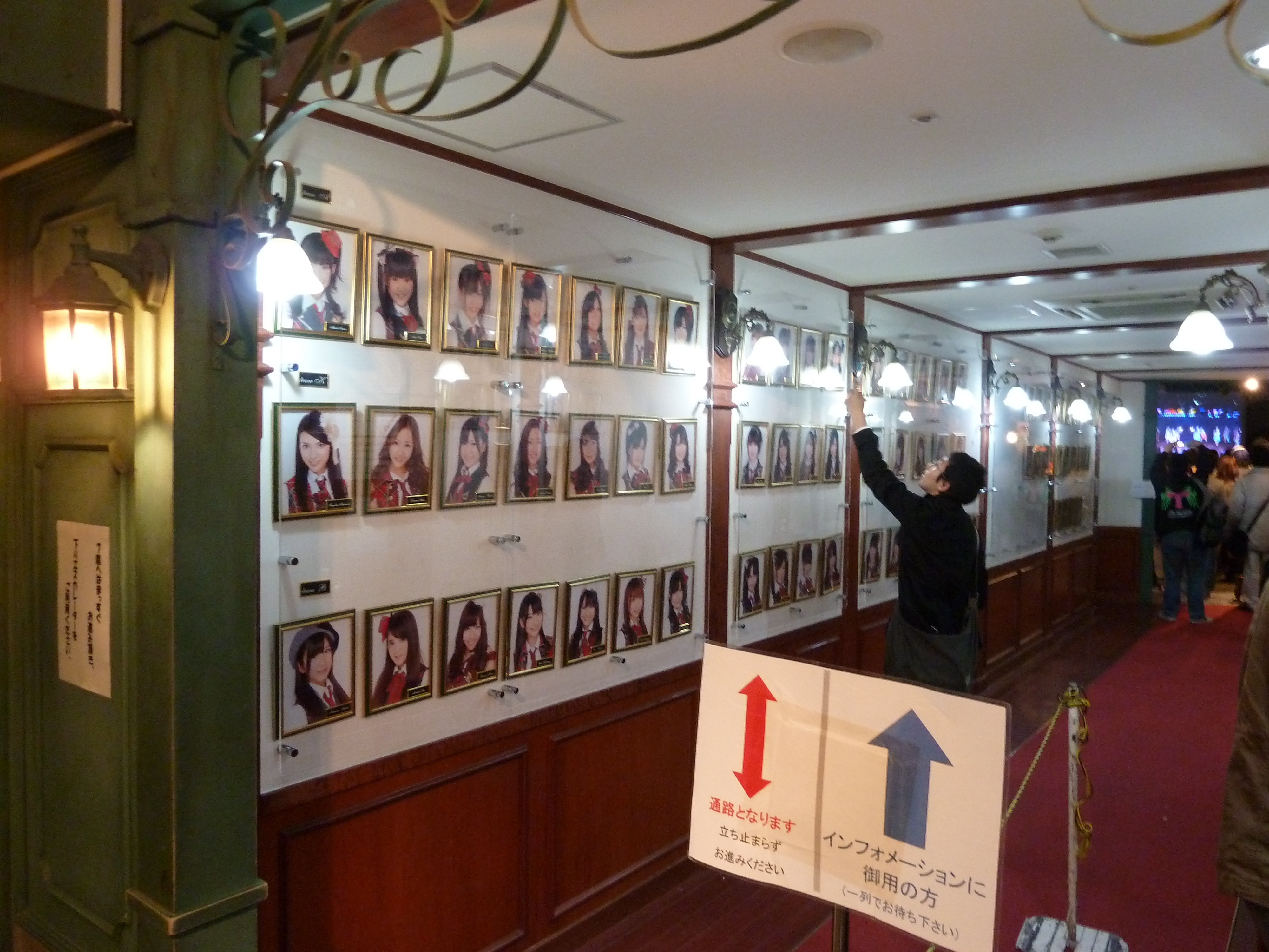 극장 로비로 이어지는 통로의 벽면에는 벽 사진(통칭: 벽사)이라고 불리는 현역 멤버 전원의 초상 사진이 장식되어 있다.[12] 멤버가 졸업할 때에는 벽 사진을 스스로 떼어내는 "벽사 제거"를 마지막으로 하는 것이 연례 행사로 자리 잡고 있다.[13]