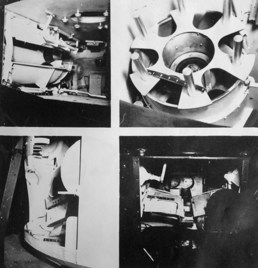 포탑은 상하로 분할된 요동 포탑이 채용되었다. 이 방식은, 주포를 고정한 상부 포탑이 시소처럼 움직이는 것으로 앙각을 조절하는 구조로, 소형화나 주포의 대구경화, 자동 장전 장치의 설치에는 유리한 반면, 방어면에서의 취약성, 앙각을 크게 얻을 수 없는 점, 밀폐도가 낮아 비나 도하 시의 물, 더욱이 오염된 외부 공기가 들어오는 등의 난점을 안고 있었다. 본 차량이 실용화에 성공함으로써 개발국인 프랑스와 미국 및 스웨덴의 관심을 끌어, 1950년대에 이들 국가는 유사한 구조의 더 큰 포탑을 개발했지만, 실용화는 하지 못했다. 실용 차량에서 요동식 포탑을 채용한 것은, 본 차량과 그 포탑을 유용한 EBR 장갑차와 SK105 쿠라시어 경전차뿐이다. 이 포탑은 차체 후부에 설치, 엔진은 차체 전면 좌측의 조종석 옆에 위치해 있다.