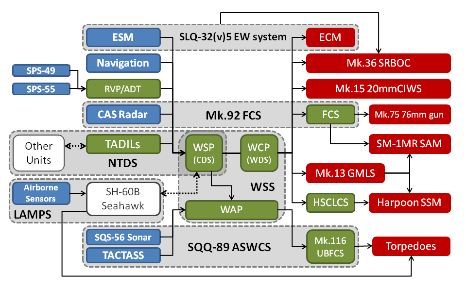 AN/SPY-1은 이지스 전투 시스템의 핵심인 록히드 마틴의 3차원 대공 레이다로, S 밴드 주파수를 사용하는 위상 배열 레이다이며, 함정에 고정된 4개의 안테나로 다수의 목표물을 탐지, 추적, 요격할 수 있고, 다양한 파생형이 존재한다. - 군용 레이더 - FCS-3